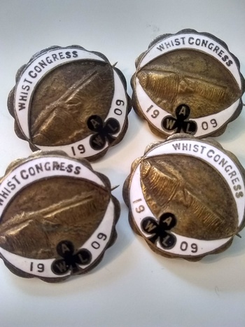 4 vintage "Whist Congress, AWL, 1909" pin manufactured by John Frick NY Jewelry Co in excellent condition