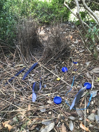 Last photo shows another local collector that enjoys blue things….yes, the bower bird is back in my garden after a few years off. Bowers were constructed in 2020, & 2021. This one seems to be at a totally different time of year to the others, so that’s slightly odd. An impressive construction with a nicely arranged collection!