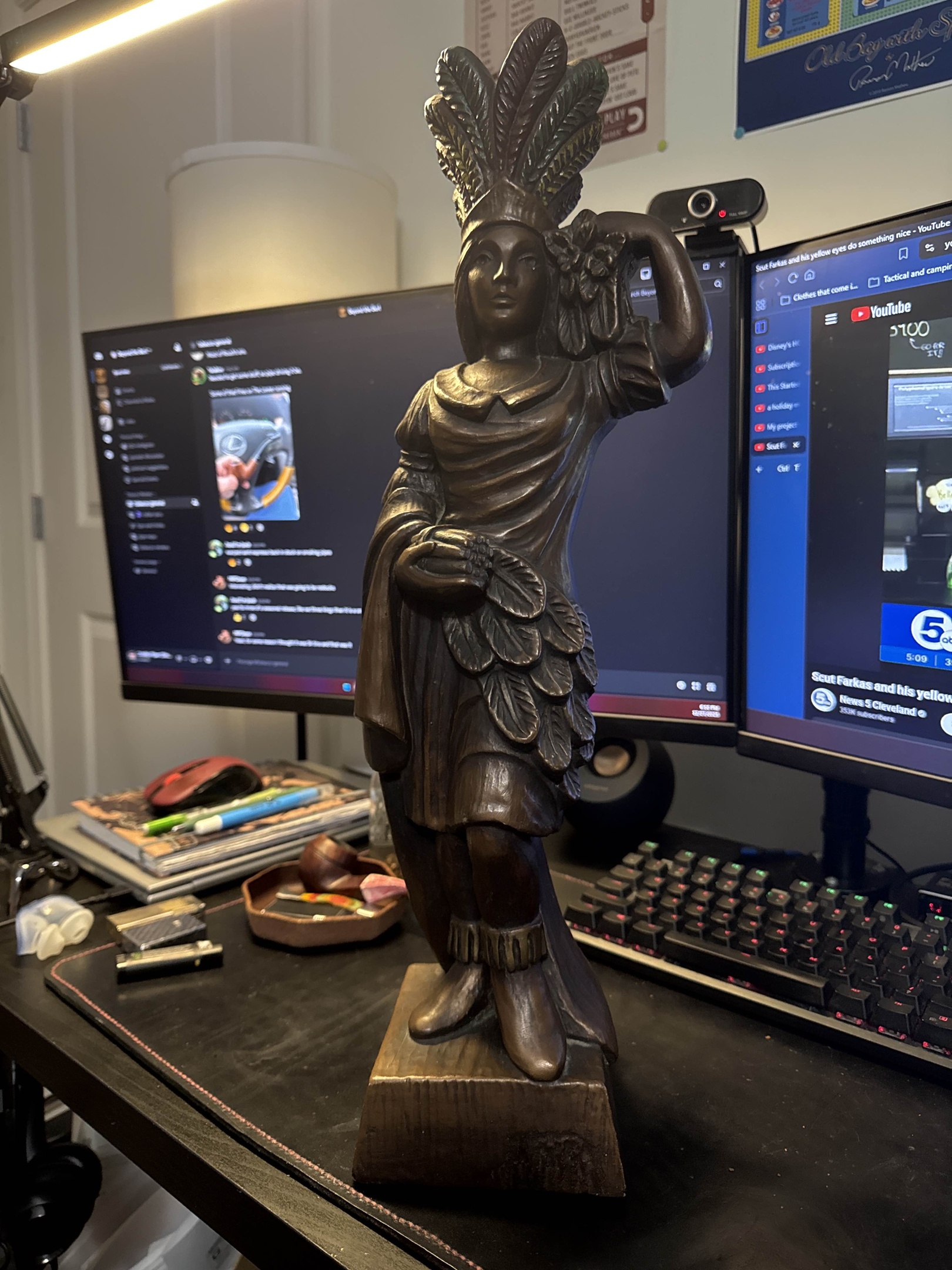 Native American Female "Cigar Store Indian" Chalkware statue 21" tall.