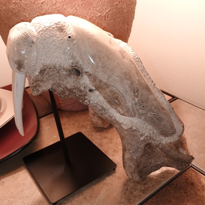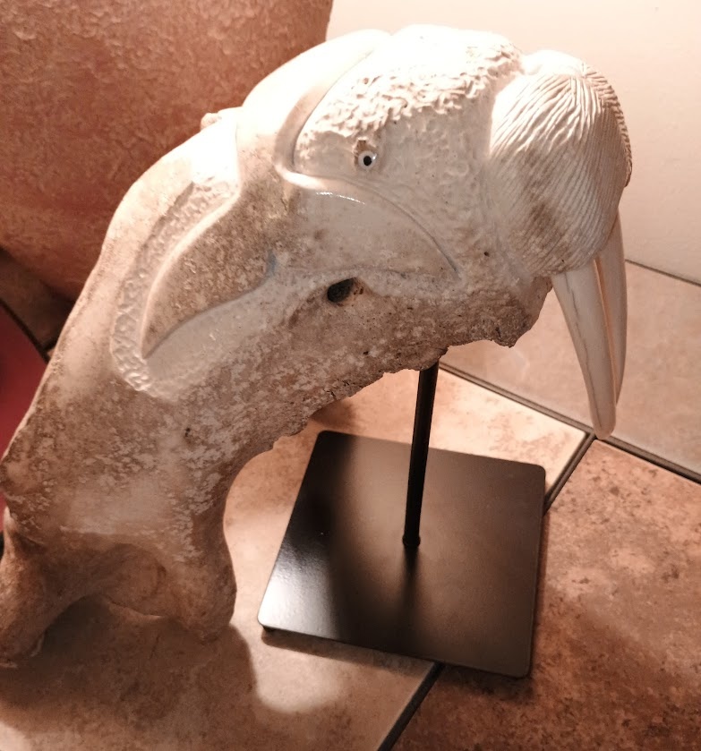 Sam Dimmick Walrus Jawbone Sculpture, Walrus Head and Bowhead Whale