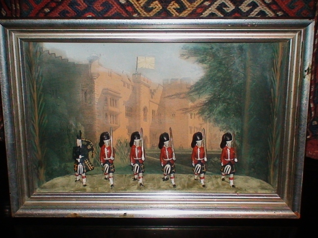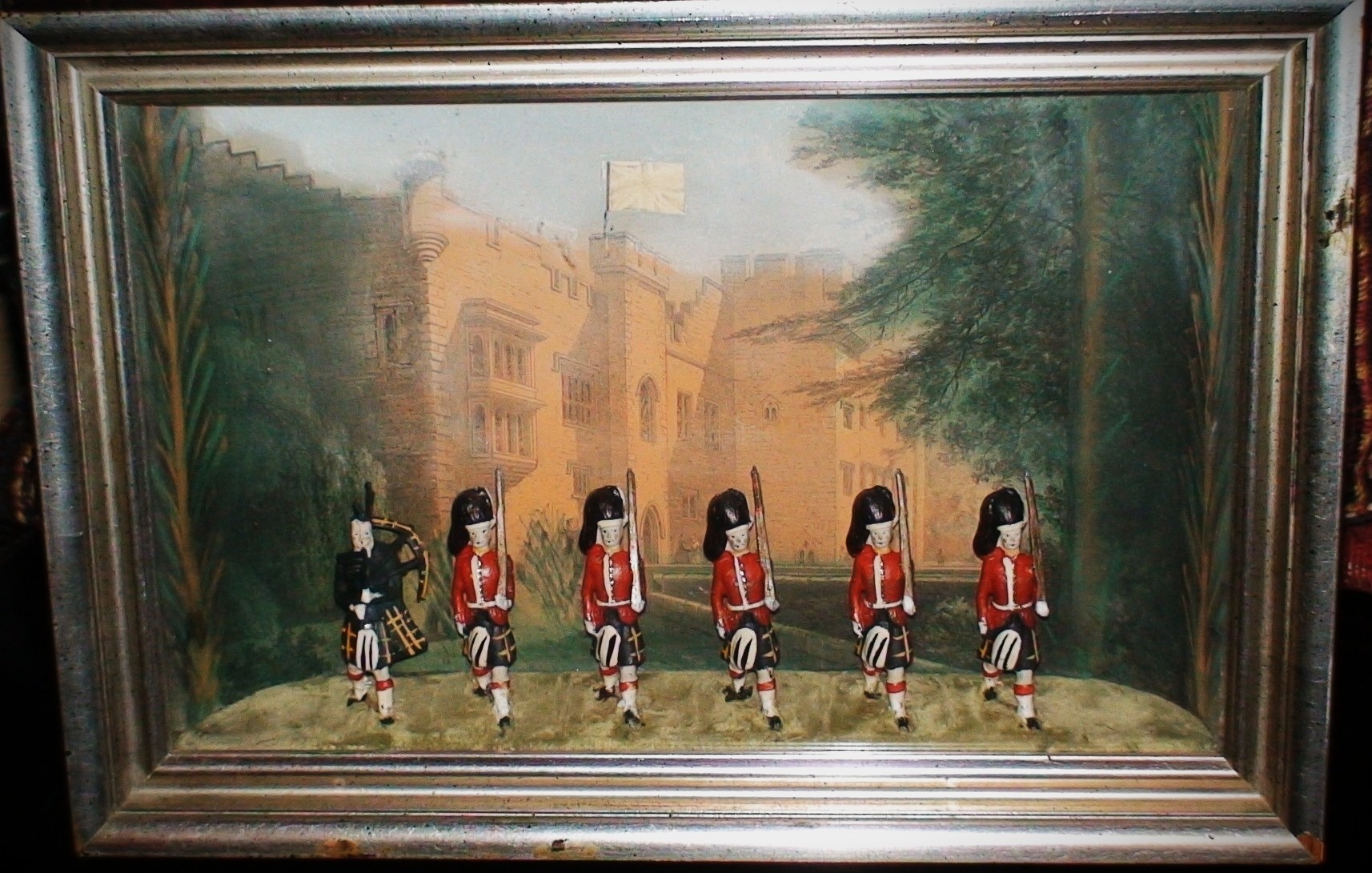 Vintage Shadowbox Diorama (Brougham Hall) Scottish Lead Soldiers 12 3/4 X 9" X 2 3/4"