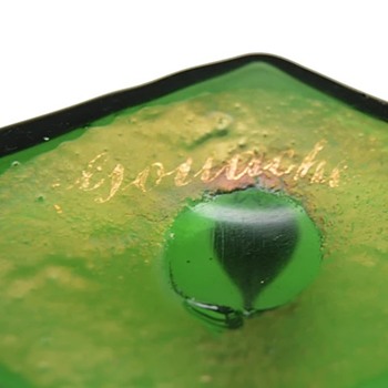 Here's an additional set of pics to supplement Loetzforever's post regarding uncommon retailer marks on Loetz glassware. I do not know who owns this piece now, but it appears to be designed by Marie Kirschner.