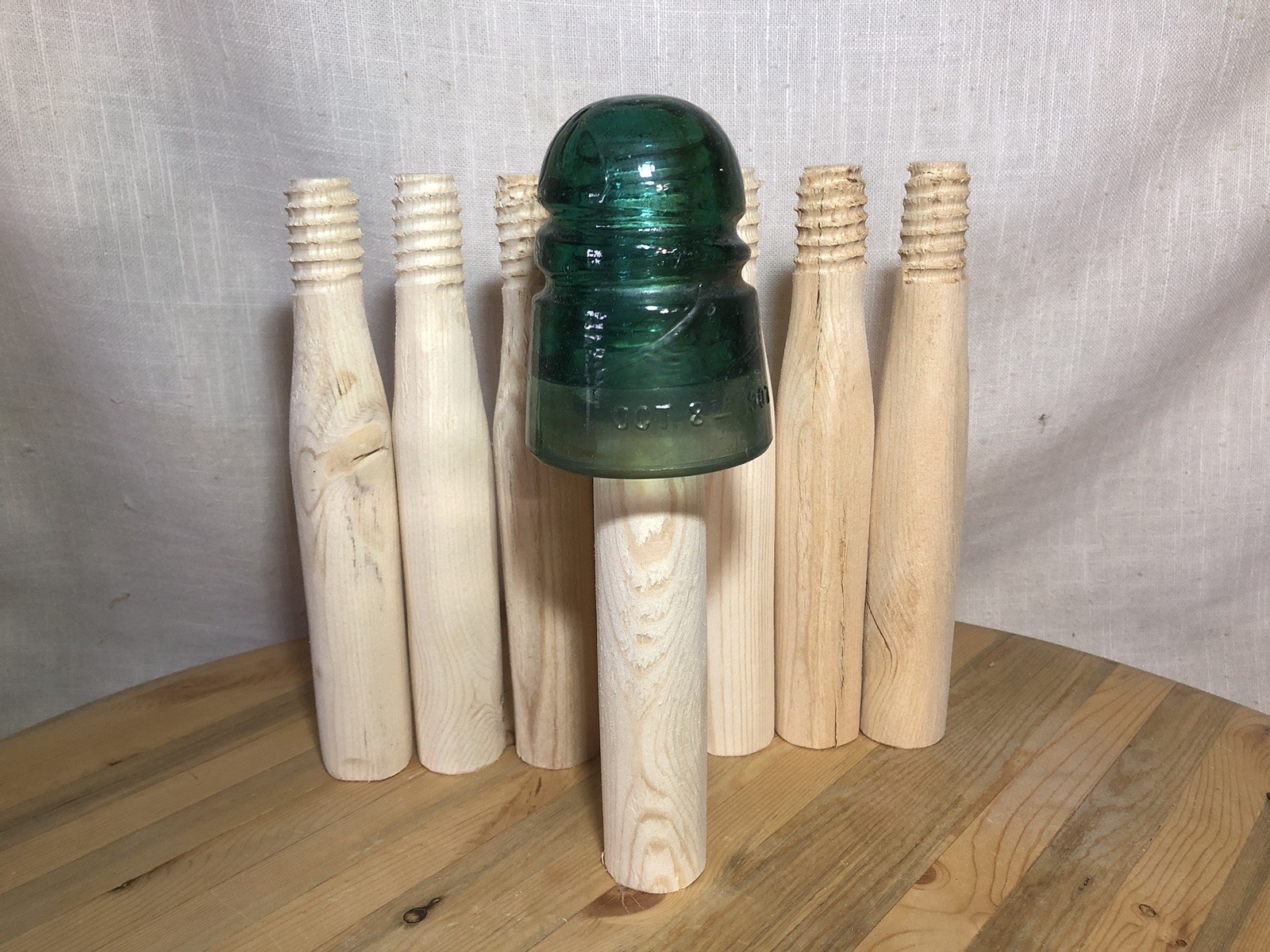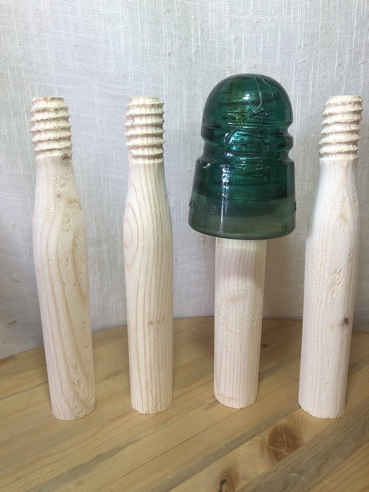 I also offer custom display stands for Muncie and Montana Stacker insulators, as well as top-mount pegs for deck rails, fence posts, workbenches, and other display setups.