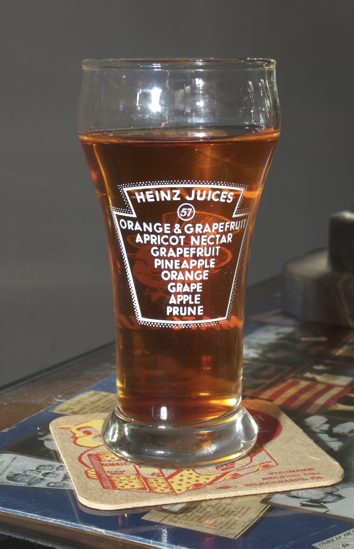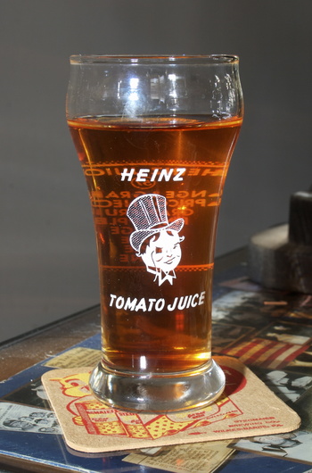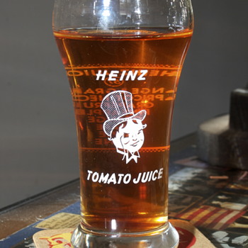 Front and rear views of a vintage glass promoting its juices line of products. Heinz had long ago abandoned its iconic "57 Varieties" logo as they feared that people would still think that that they only issued 57 varieties... !