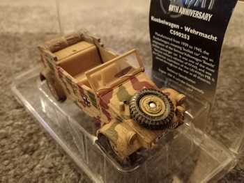 The model this time is a Corgi but again in 1:43 scale. It shows a 1944 Kübelwagen dressed to impress with its roof off.