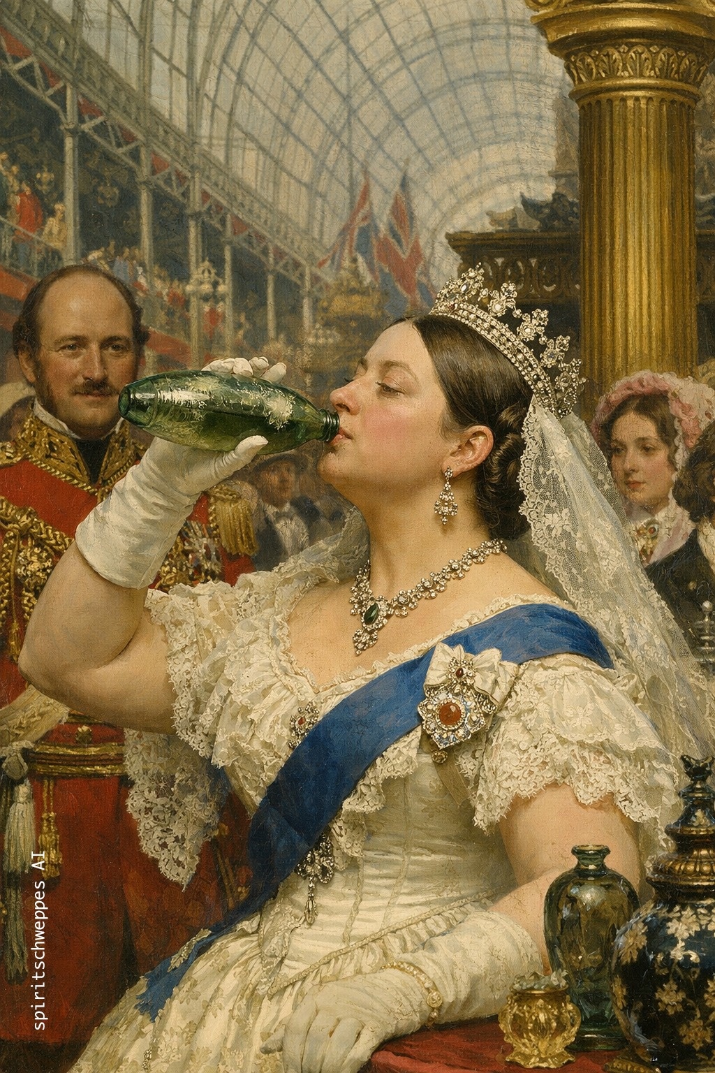 Victoria's schwepping by spiritschweppes´AI. But: What did it actually look like? The right torpedo, the right glass, the right spot in the Crystal Palace. In 1851, J. Schweppe & Co. produced 1 million torpedoes for the 6 million visitors to the Great Exhibition, but nobody ever illustrated or photographed them. Who knows more details ?! That is the question, "spiritschweppes" is working on it, to be continued ???? contact: https://www.facebook.com/hansjuergen.krackher/