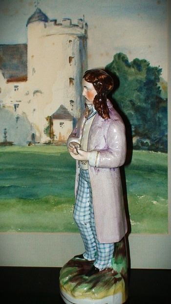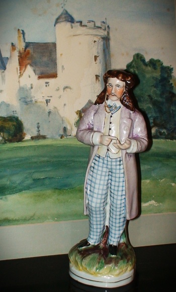 Very scarce antique 19th Century Staffordshire pottery figurine of Edward Sothern as "Lord Dundreary" in "Our American Cousin." It measures about 8 1/2" tall.