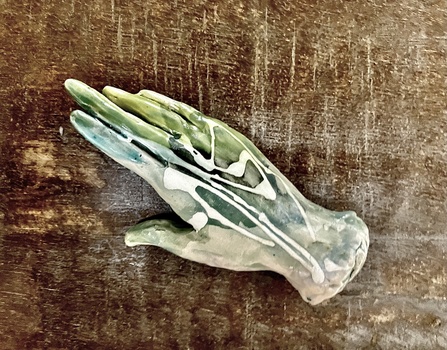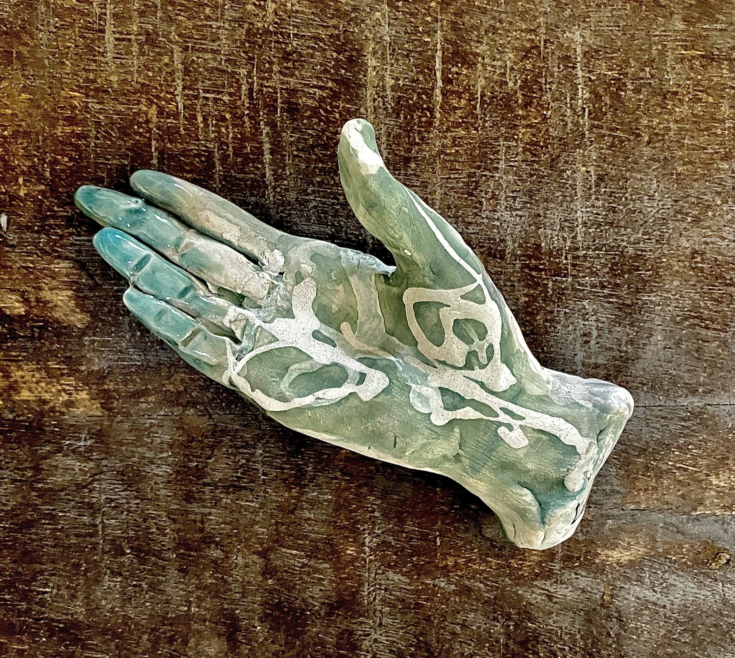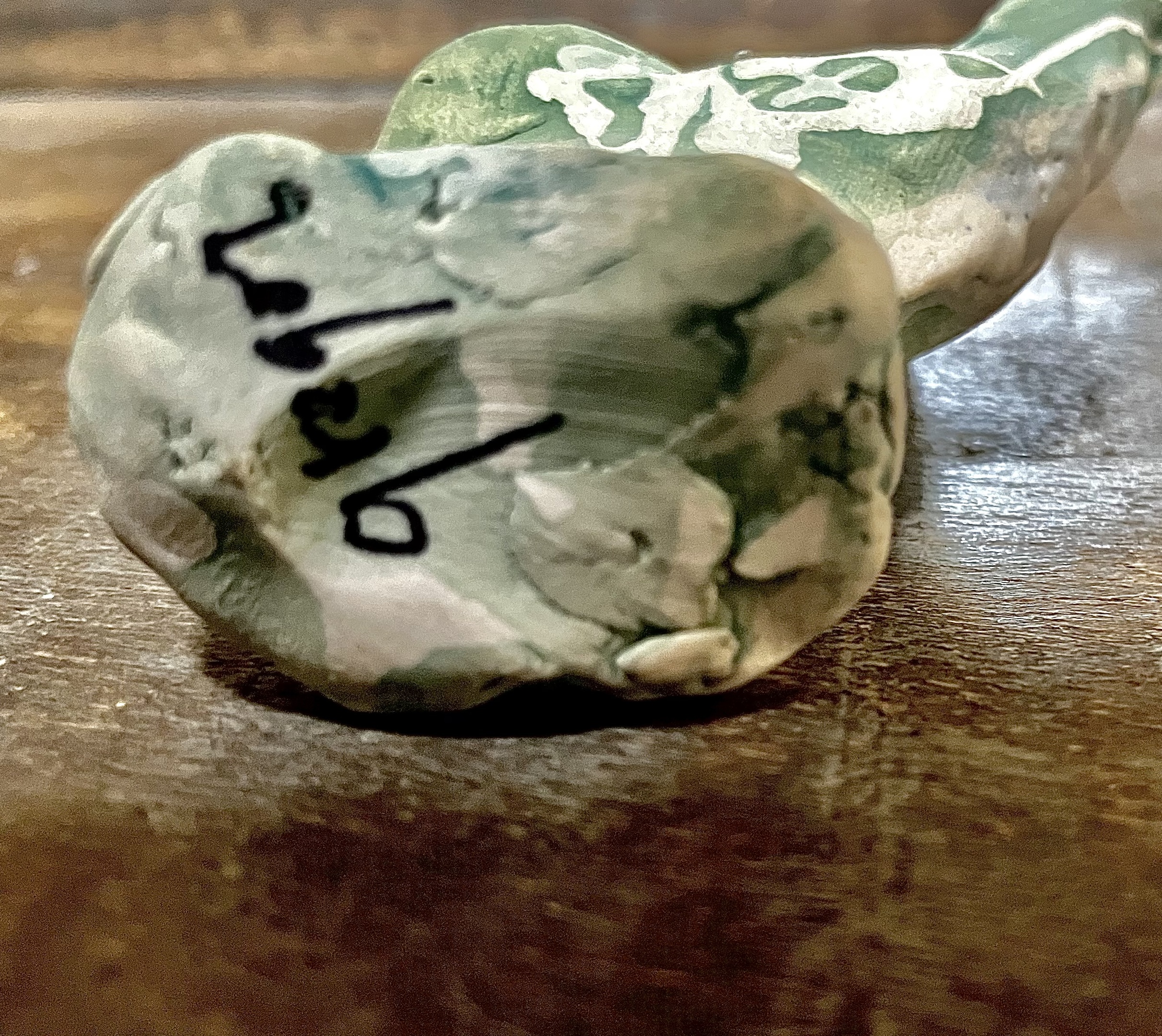 sculpted from porcelain with slips and glaze cone 5, 4.5” x 2.5” x 1”, 2025