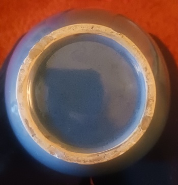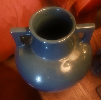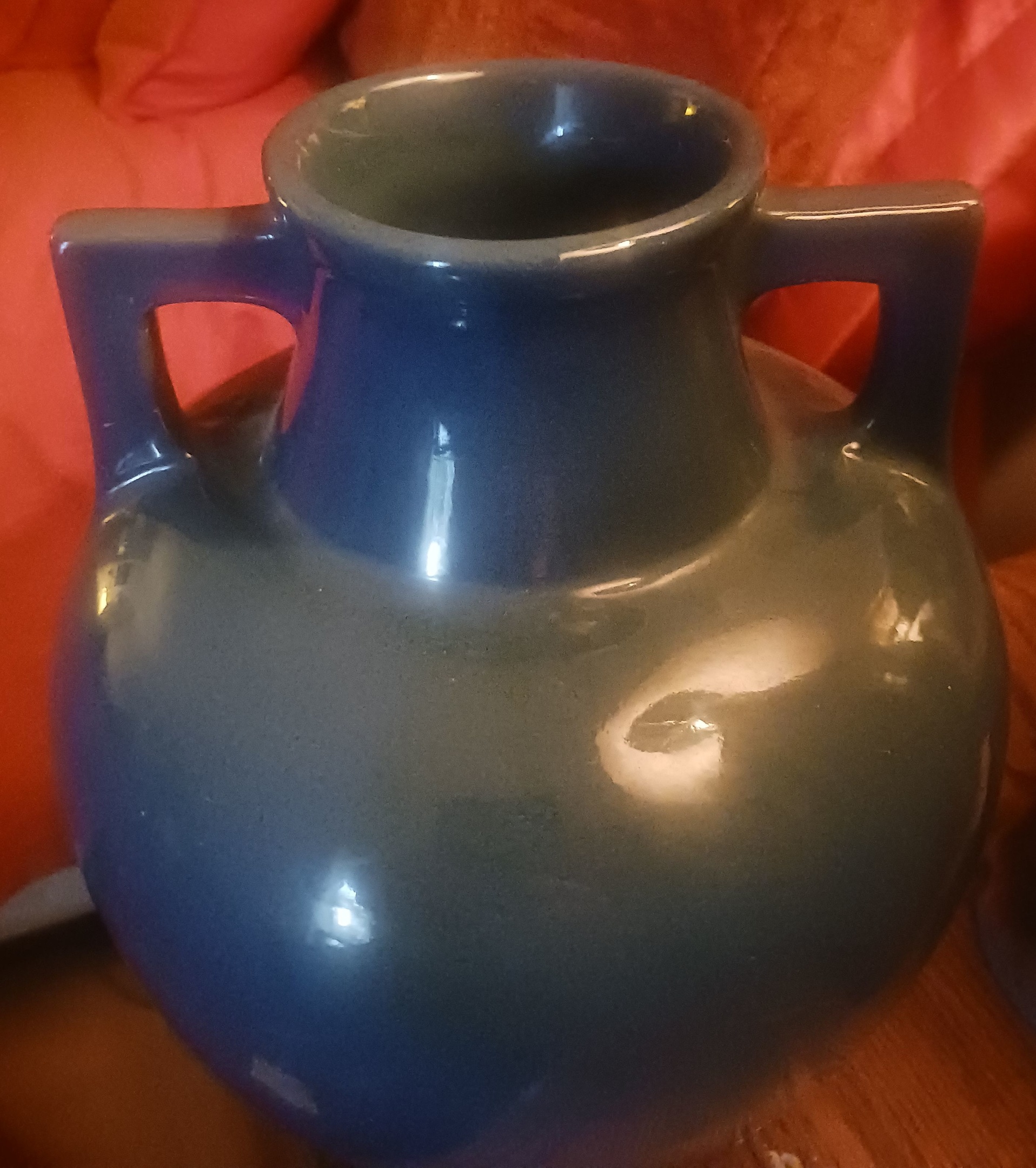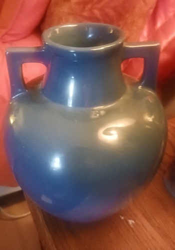 Art deco 11" dark blue ceramic vase no marks. Cannot find a maker? I used to know but I've forgotten.