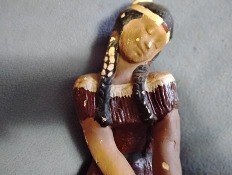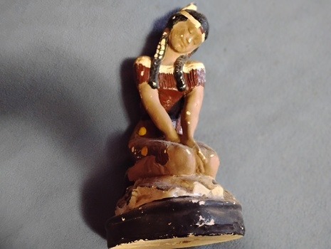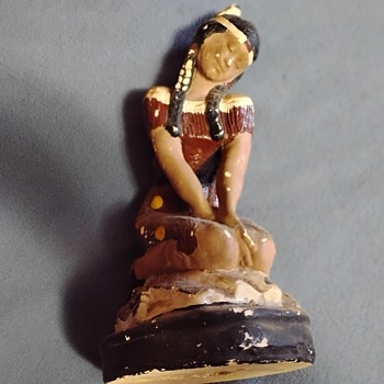 A Vintage All Ceramic Indian Squaw. She Is 15" Tall From Her Base. It Appears That She Has A Shyness About Her, With Her Slight Smile..As If In A Peaceful Meditation.