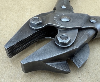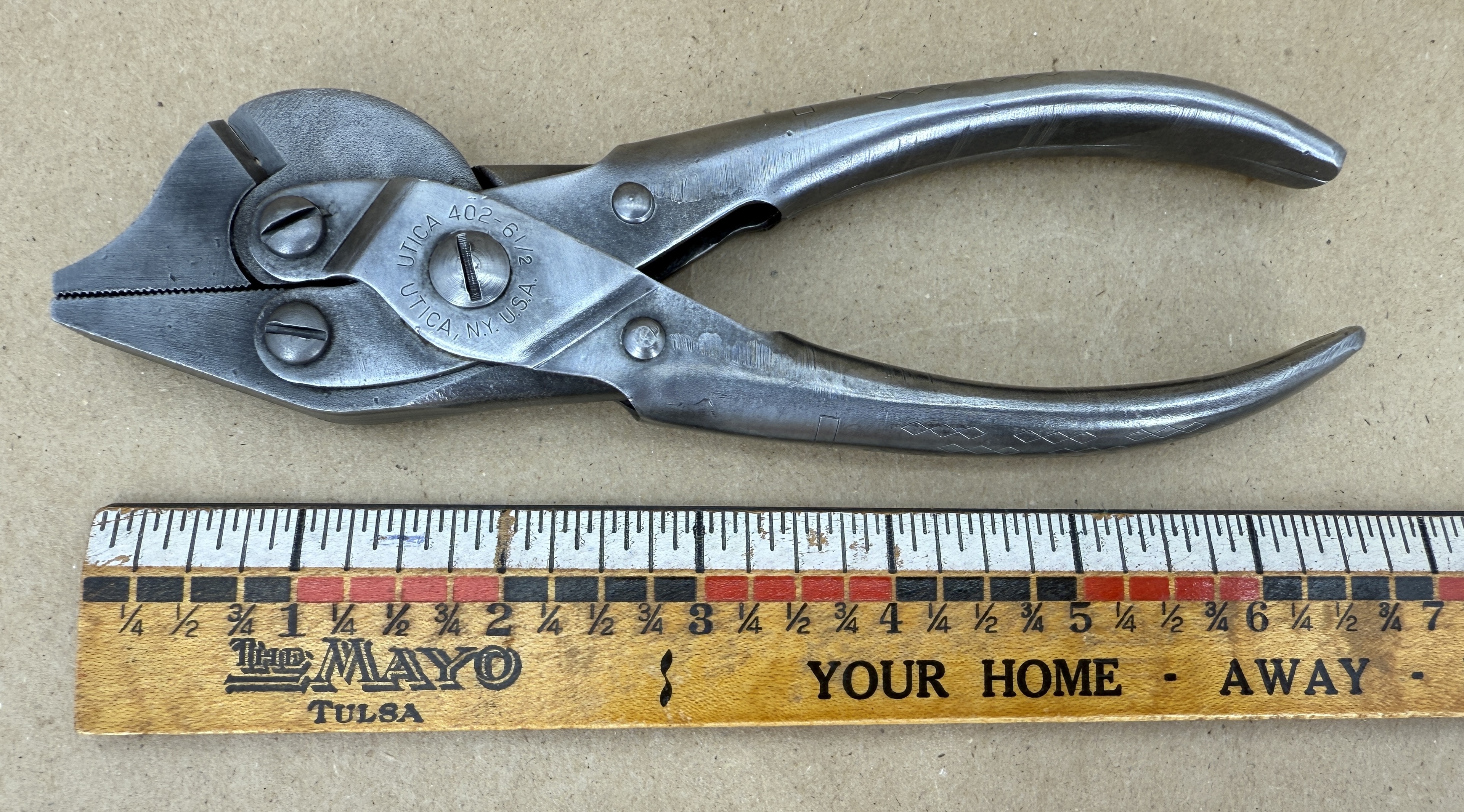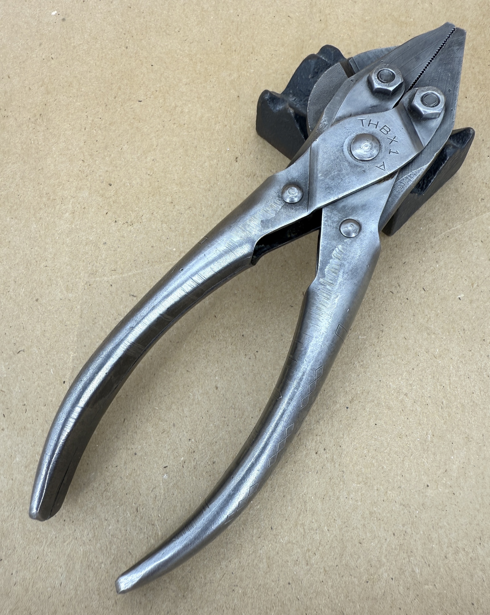 A real clean pair of WWII-era (THBX1A) Utica No. 402 6-1/2” parallel action pliers with side cutter, that was part of the M12 Tool Kit issued with Browning .30 and/or .50 caliber machine guns.