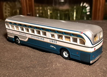 Not sure what year this model is based on but I will guess 1950s. It looks the type that would drop off a passenger who has all their possessions in Barstow. Or even East Oakland Looks like they will never make it to Hollywood.