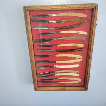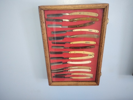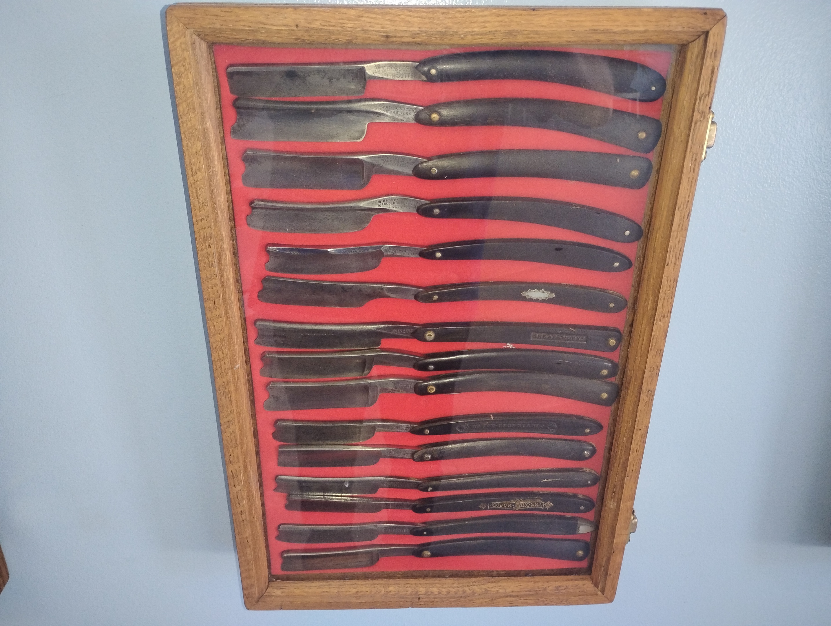 An Assortment Of Vintage Barber Shavers Nicely Displayed On A Wall Inside My Barber's Shop.