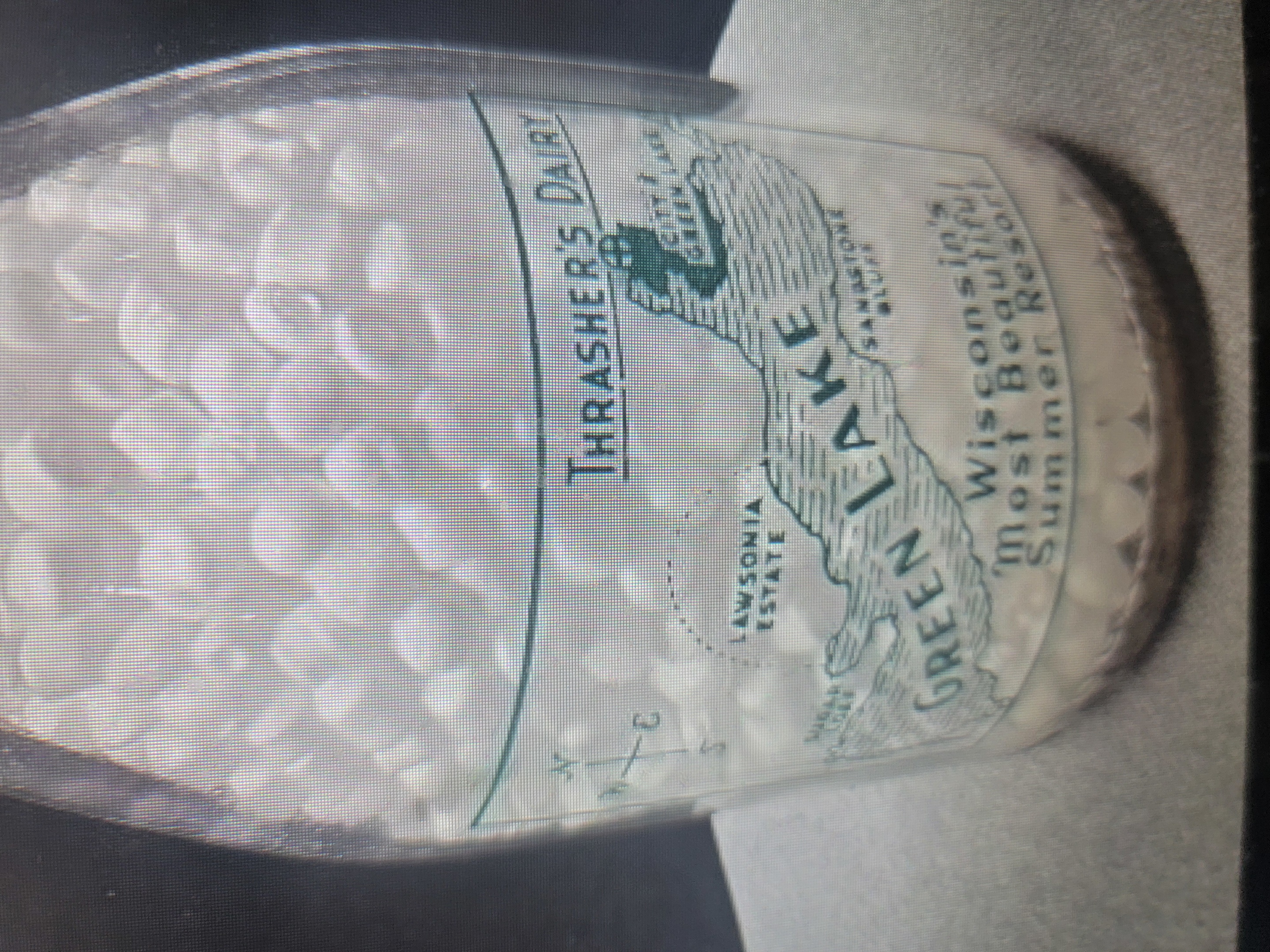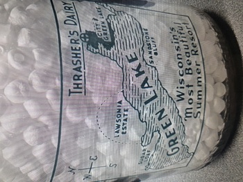 Pictured here is a green pyro quart milk bottle from THRASHER'S DAIRY...GREEN LAKE WISCONSIN. What I like about this bottle is the neat Wisconsin map on the back side. A nice addition for a collection.