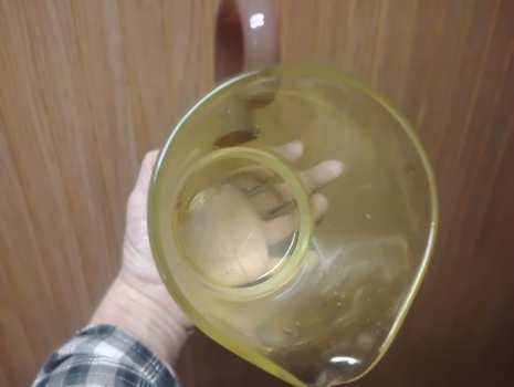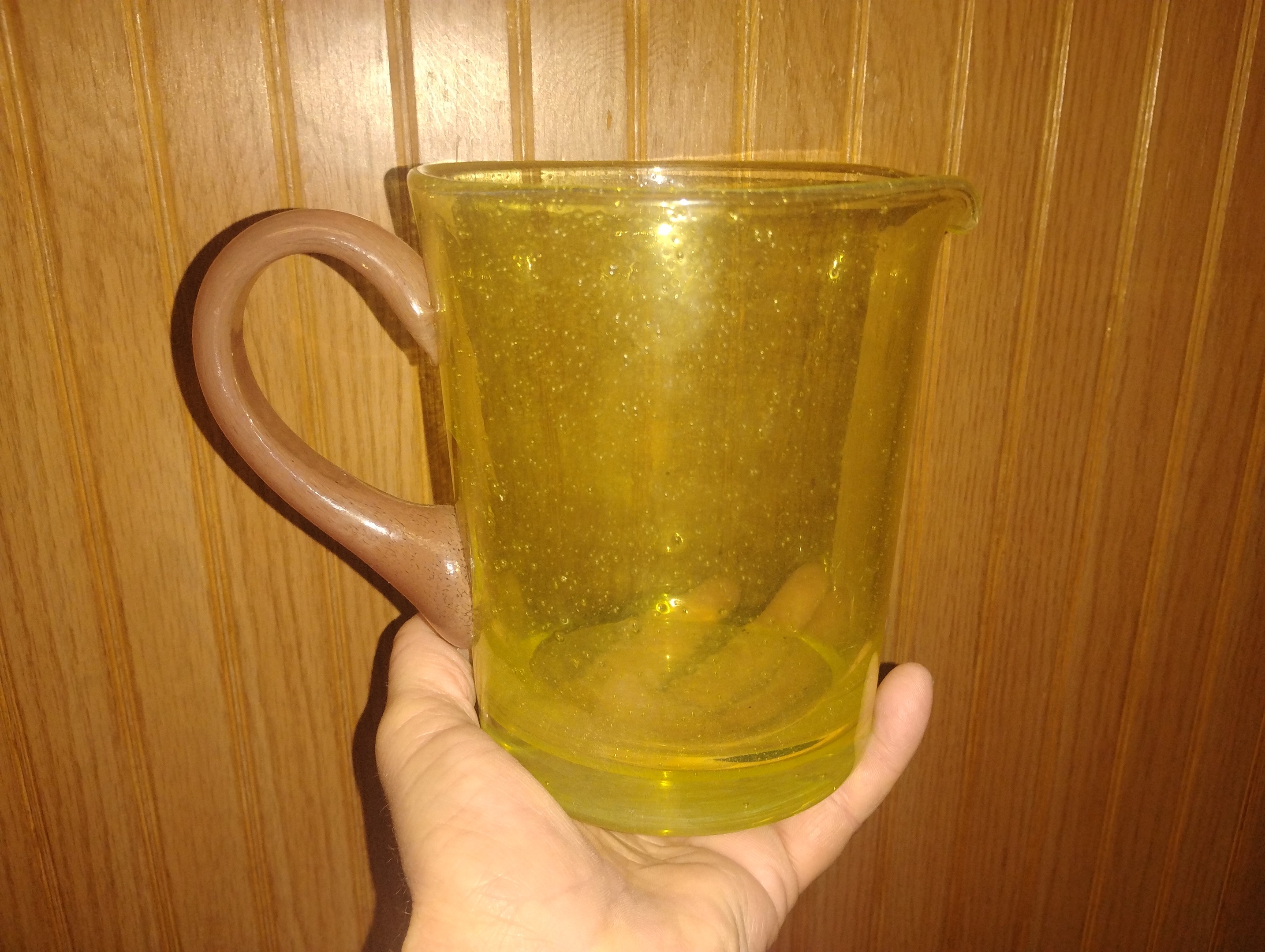 this one has a hand-made in Poland sticker; handles shape can vary with hand made art glass