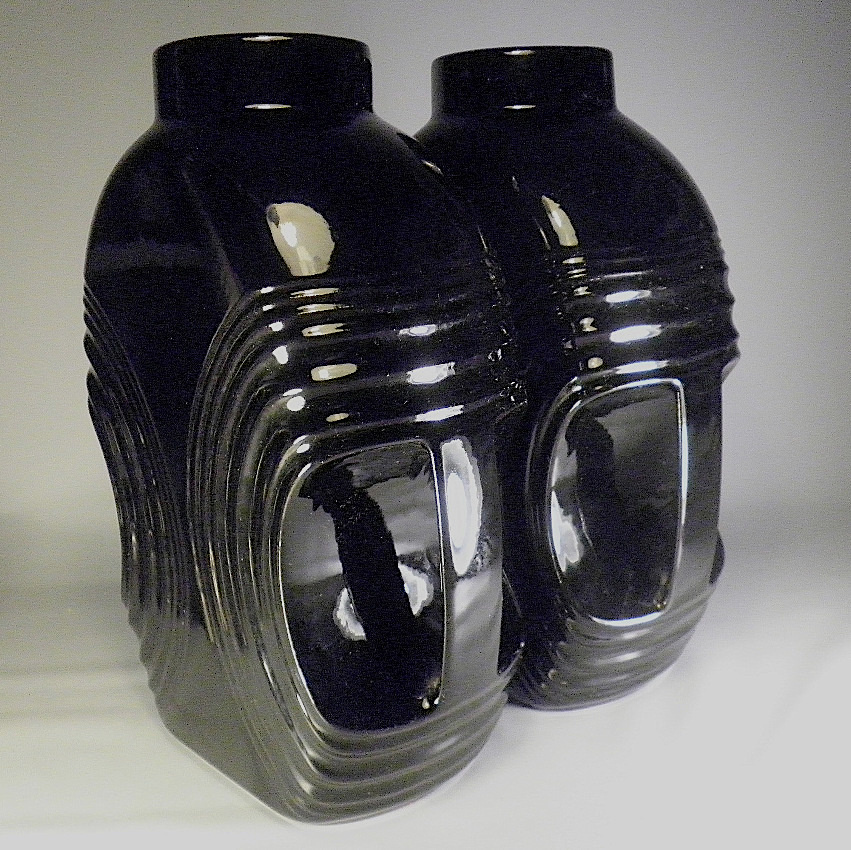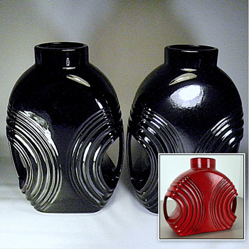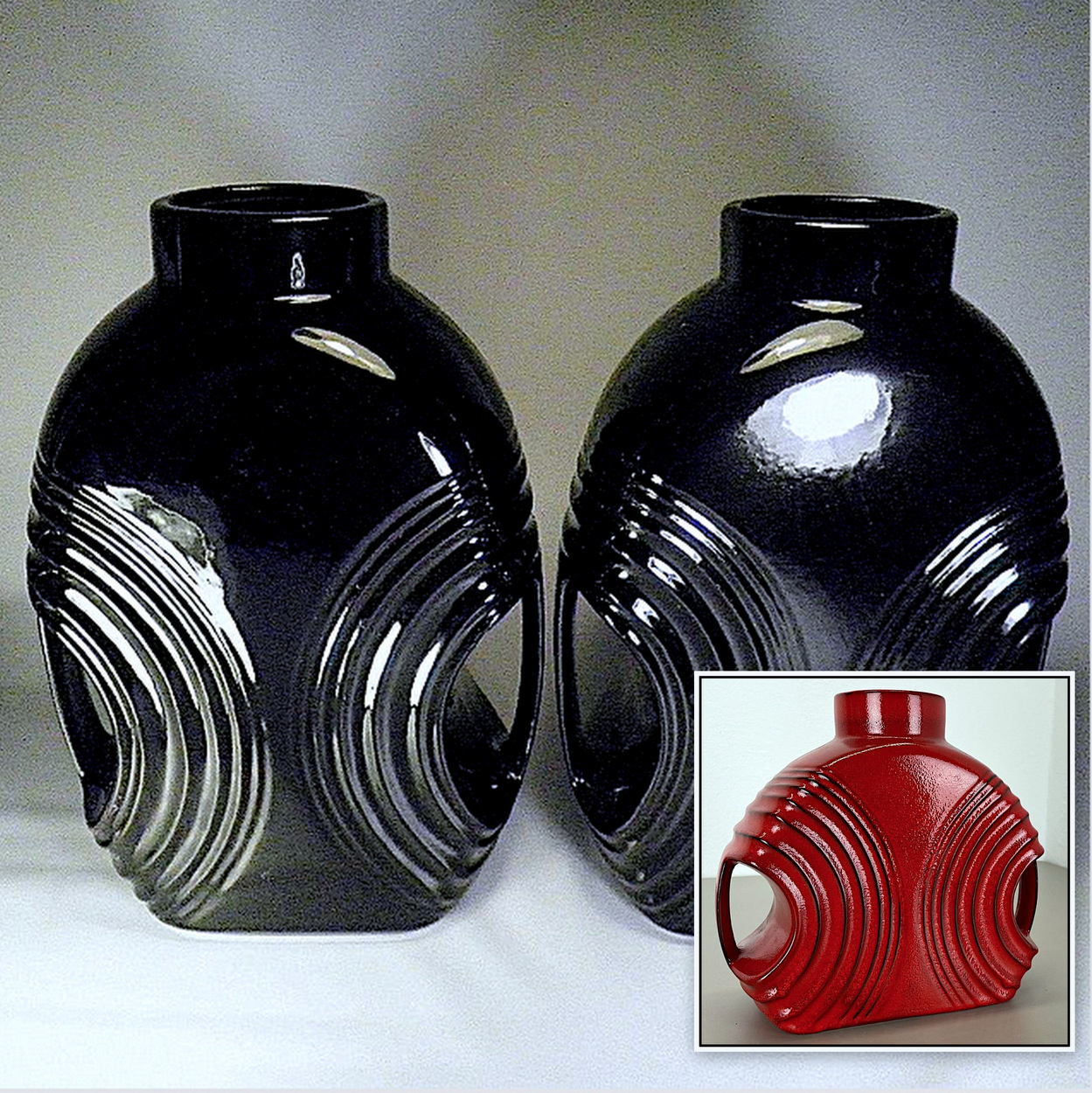 Cari Zalloni's 'CONTINUA" series includes these matched, 10" tall glossy black two handled vases.