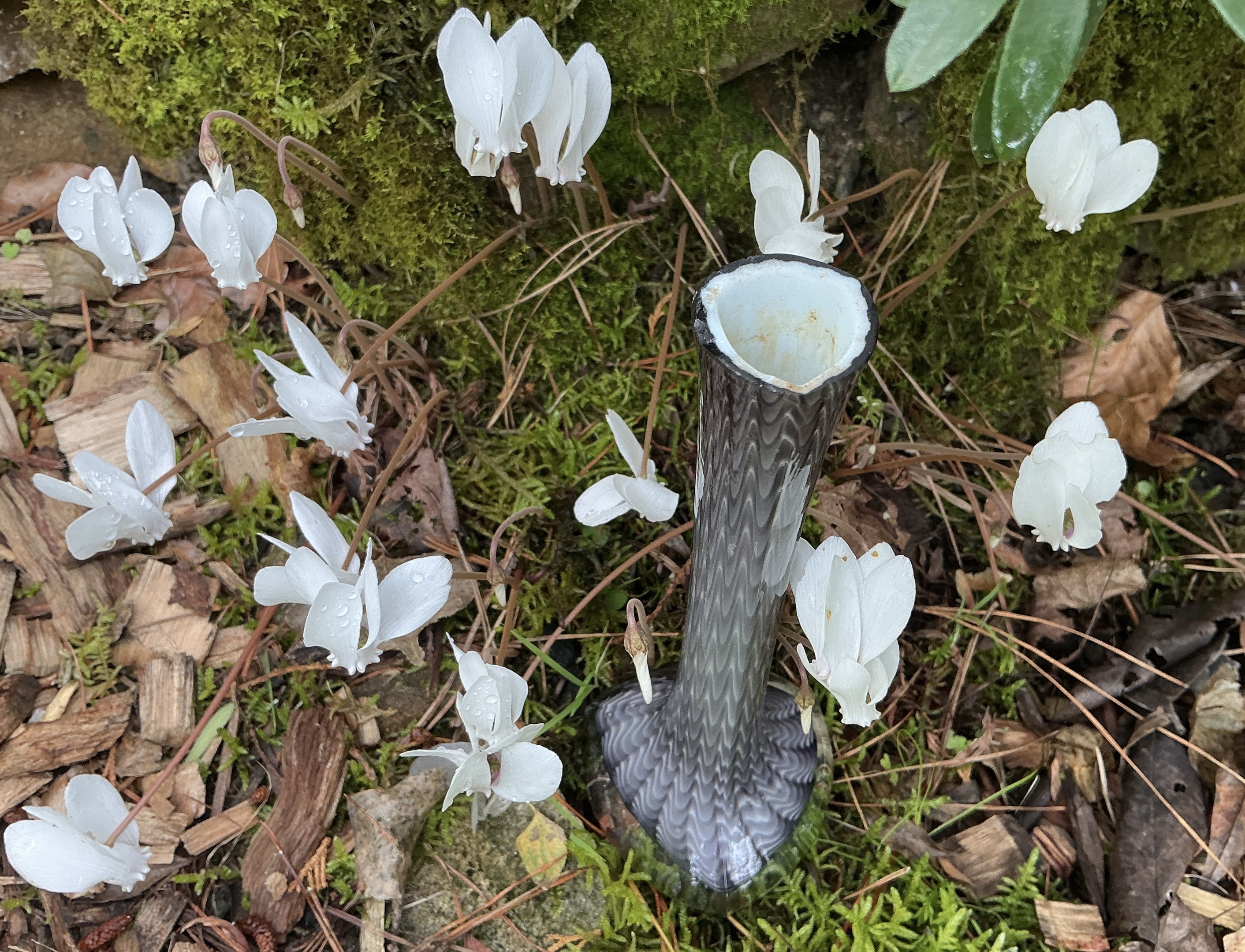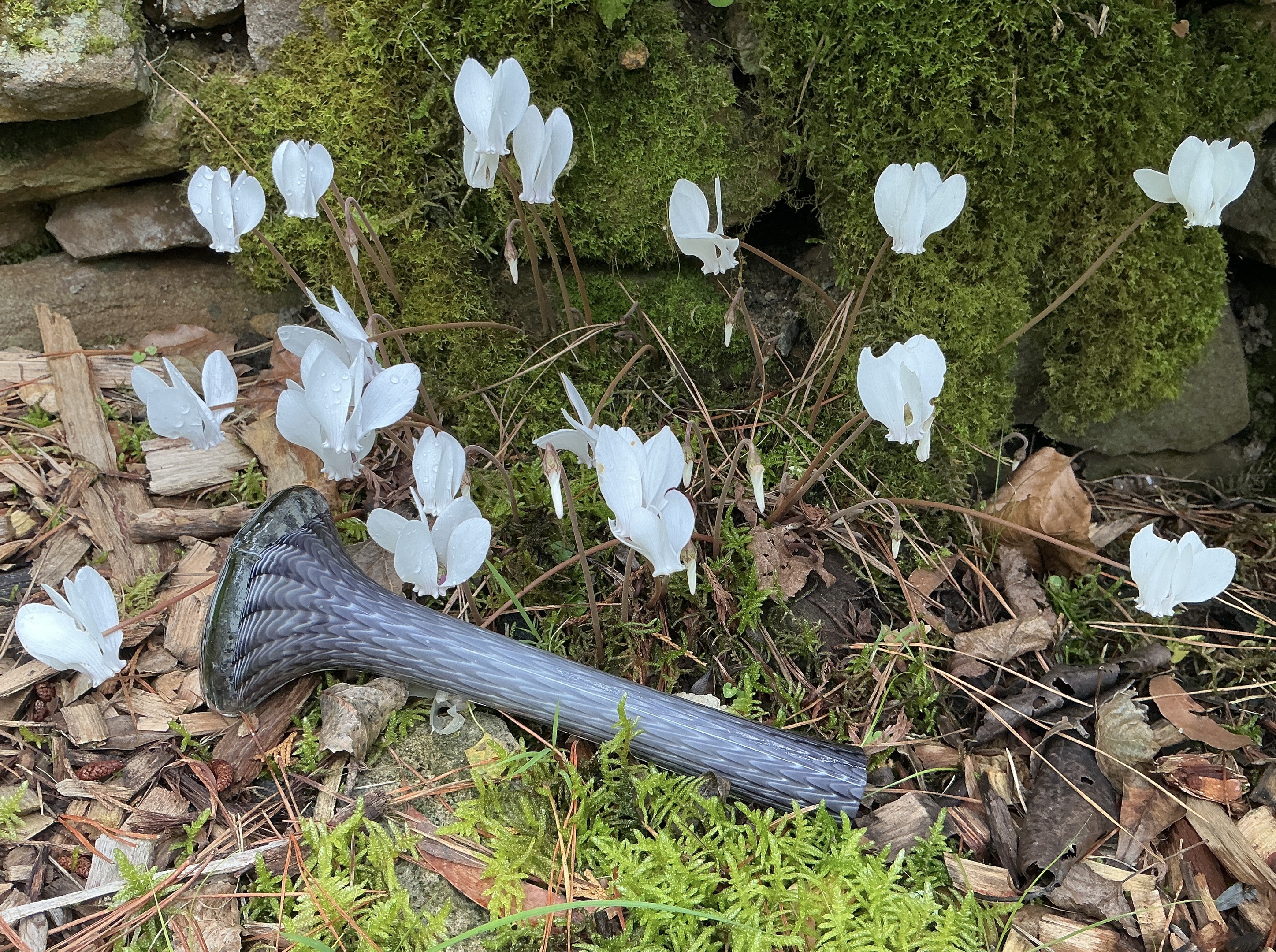 (Pictured with Cyclamen Hederifolium currently in bloom in my garden. This popped up as a random seedling in the lawn, I recognised it as a Cyclamen but had no idea they could grow this way. Anyway, I moved it to a spot near a stone wall & it has slowly increased over the last 6 - 7 years. The flowers appear in late summer without leaves, & if seen from a distance it looks like they hover in the air. Leaves appear when flowers are finished. These are quite different from the types of Cyclamen typically seen as potted plants.)