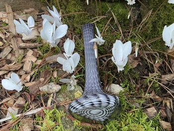 Victorian monochrome pull up/zipper pattern glass vase - mystery repost