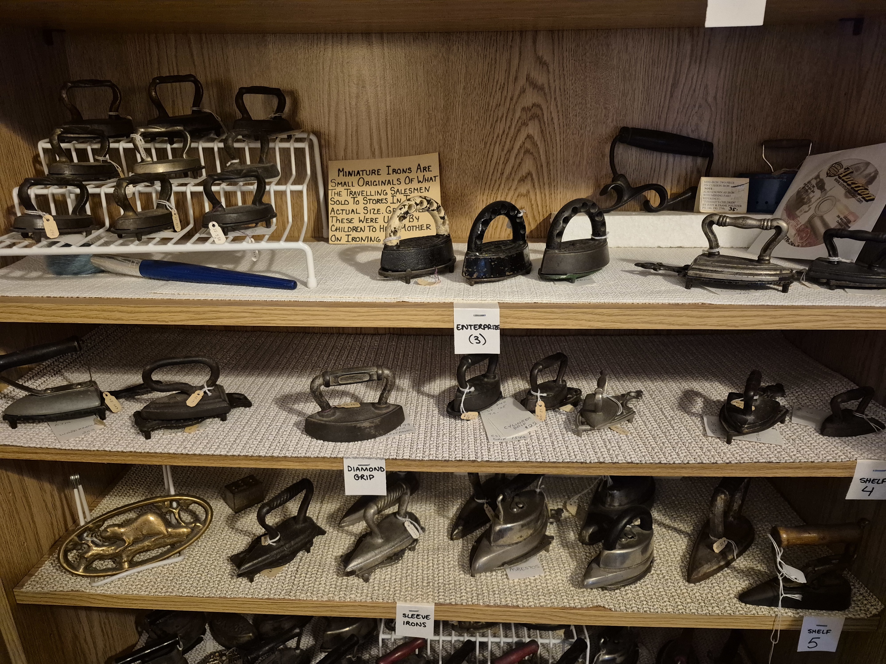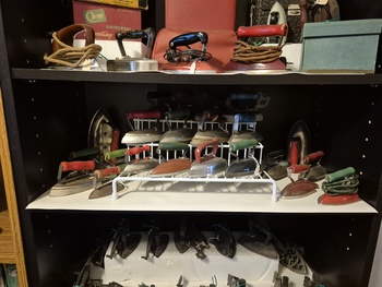 Inherited my dads beloved miniature iron collection he built over the past 50 years. I've actually not counted it but I know he used to say he had over 500 miniature irons. CBC Television in Ottawa came to the house once in the early 1980s and did a small story on him. These are photos 1 - 4.