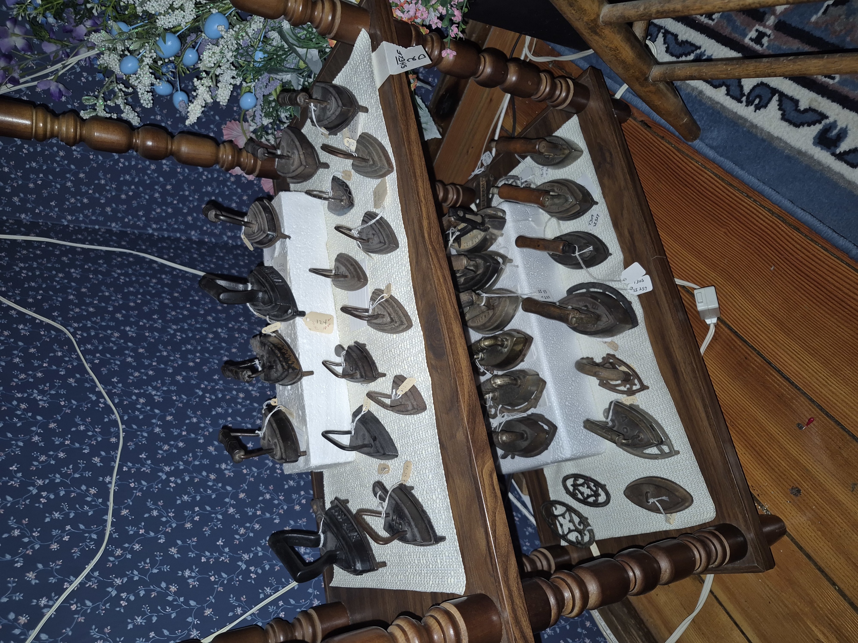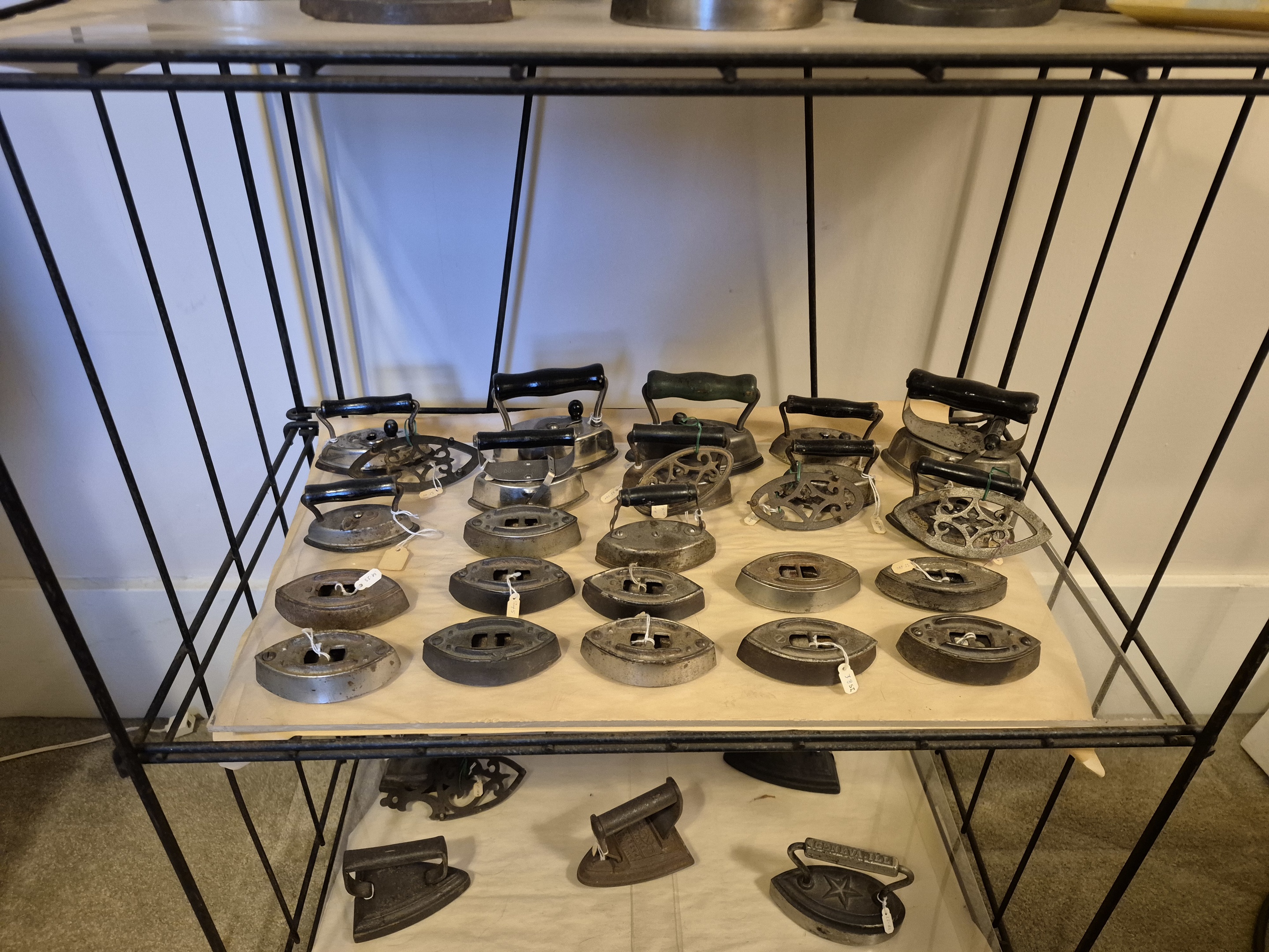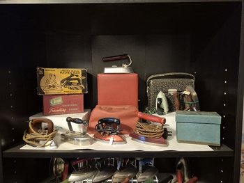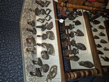 Inherited my dads beloved miniature iron collection he built over the past 50 years. I've actually not counted it but I know he used to say he had over 500 miniature irons. CBC Television in Ottawa came to the house once in the early 1980s and did a small story on him. These are photos 13 - 16.