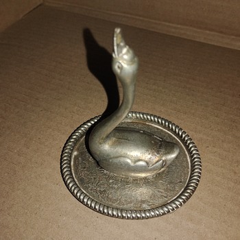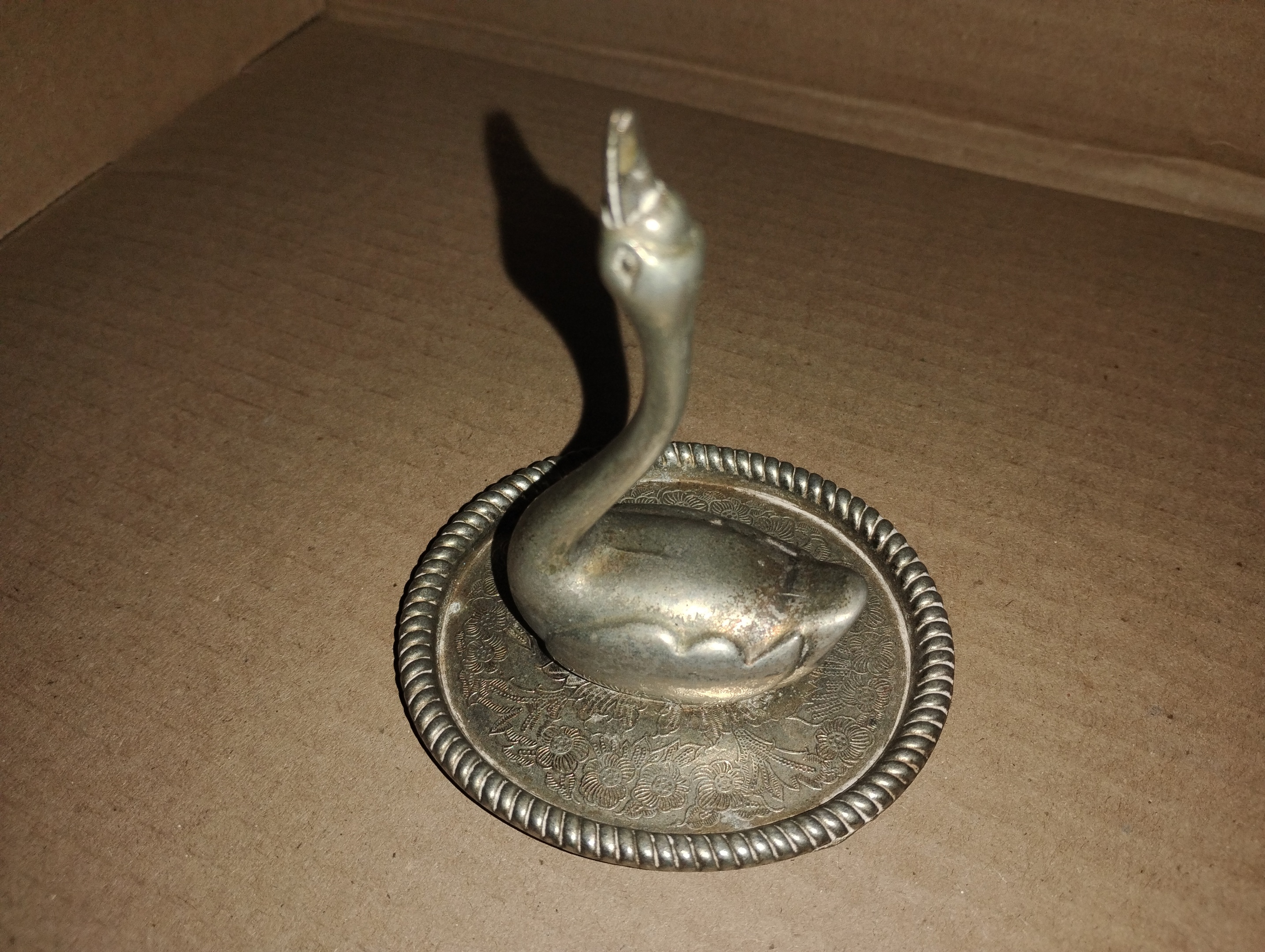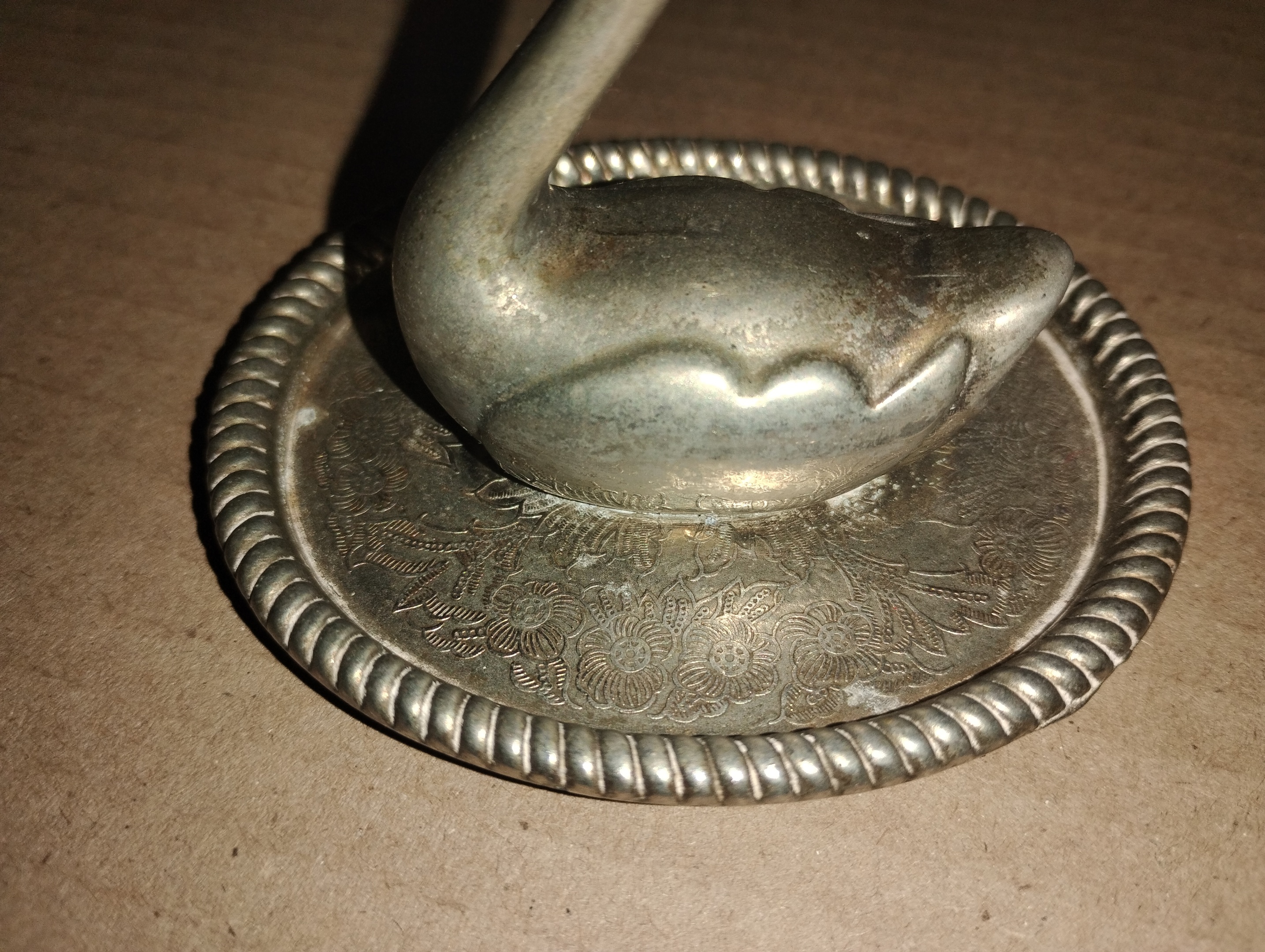A Vintage Solid White Brass Swan In Song. Detailed Designed On The Base. Felted Bottom. No Makers Mark.