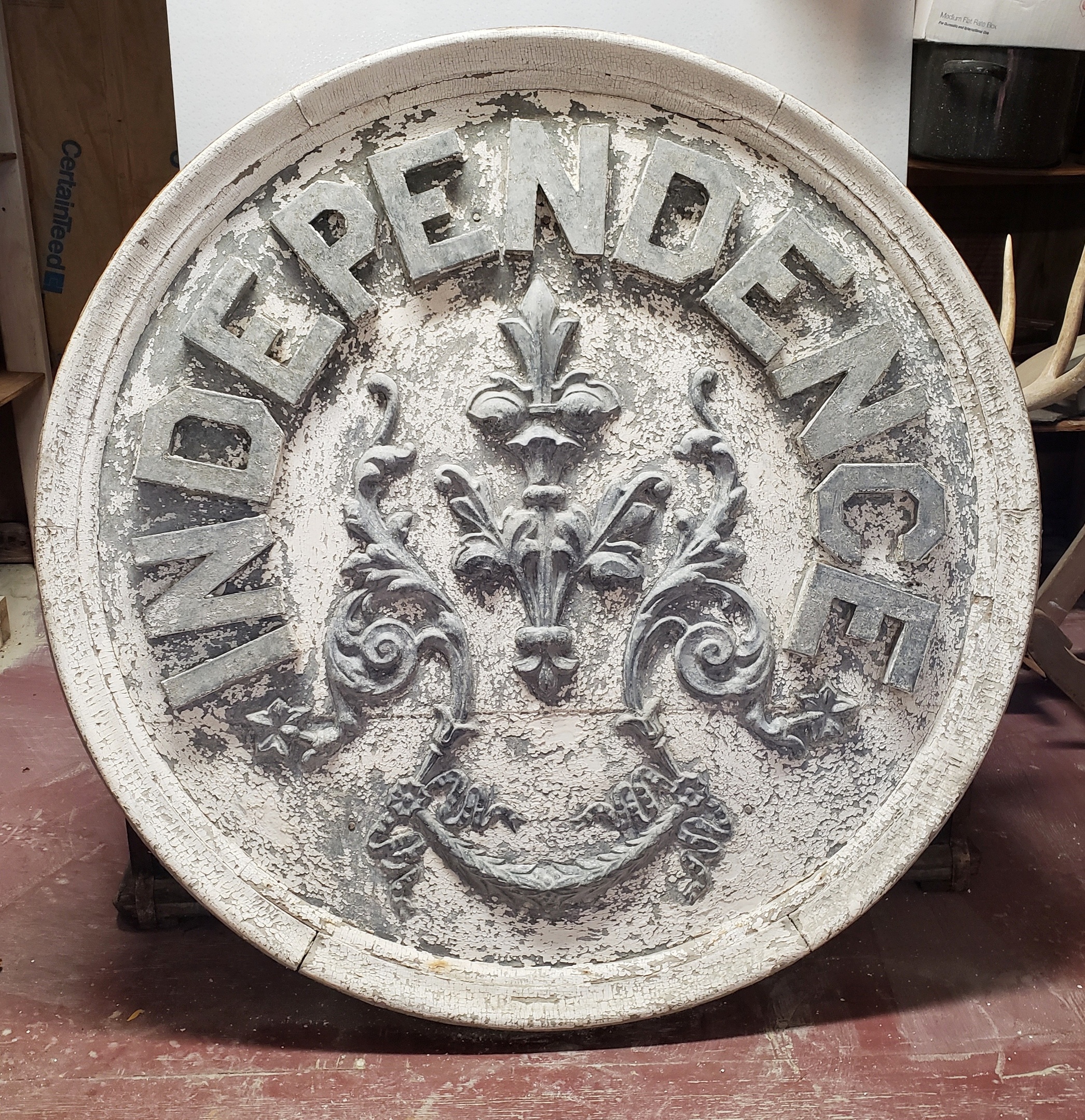 I bought this sign in KC, MO about 1988 from an antique dealer/friend, and have finally gotten around to cleaning it up.