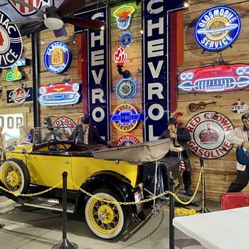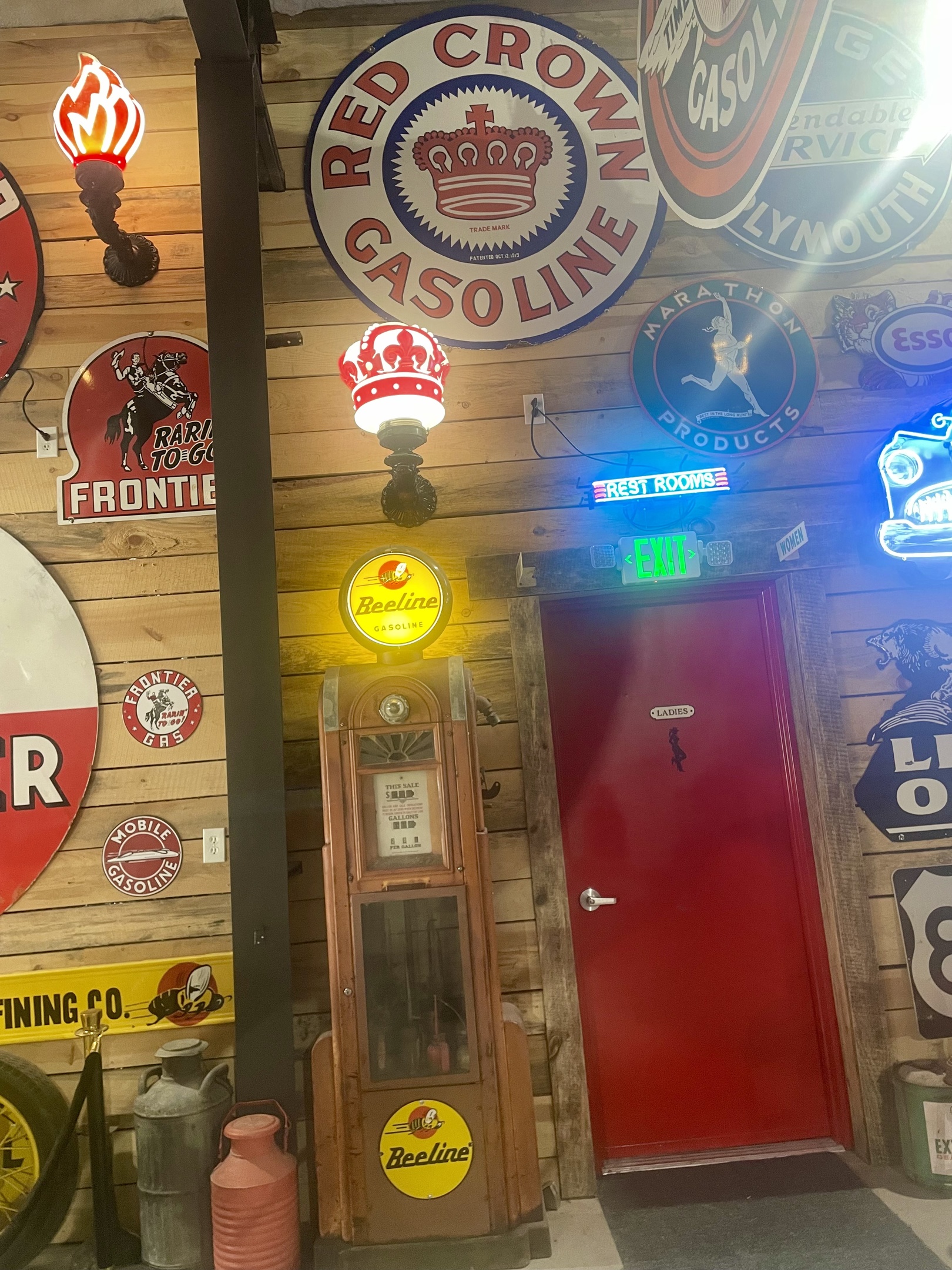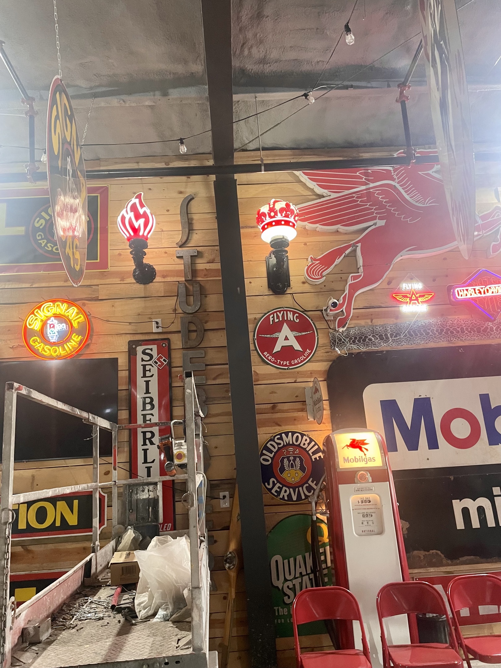 These cool Standard Oil glass flames went on big signs in the 1930s-40s but we found another way to display the few we have. I think they look great on the walls