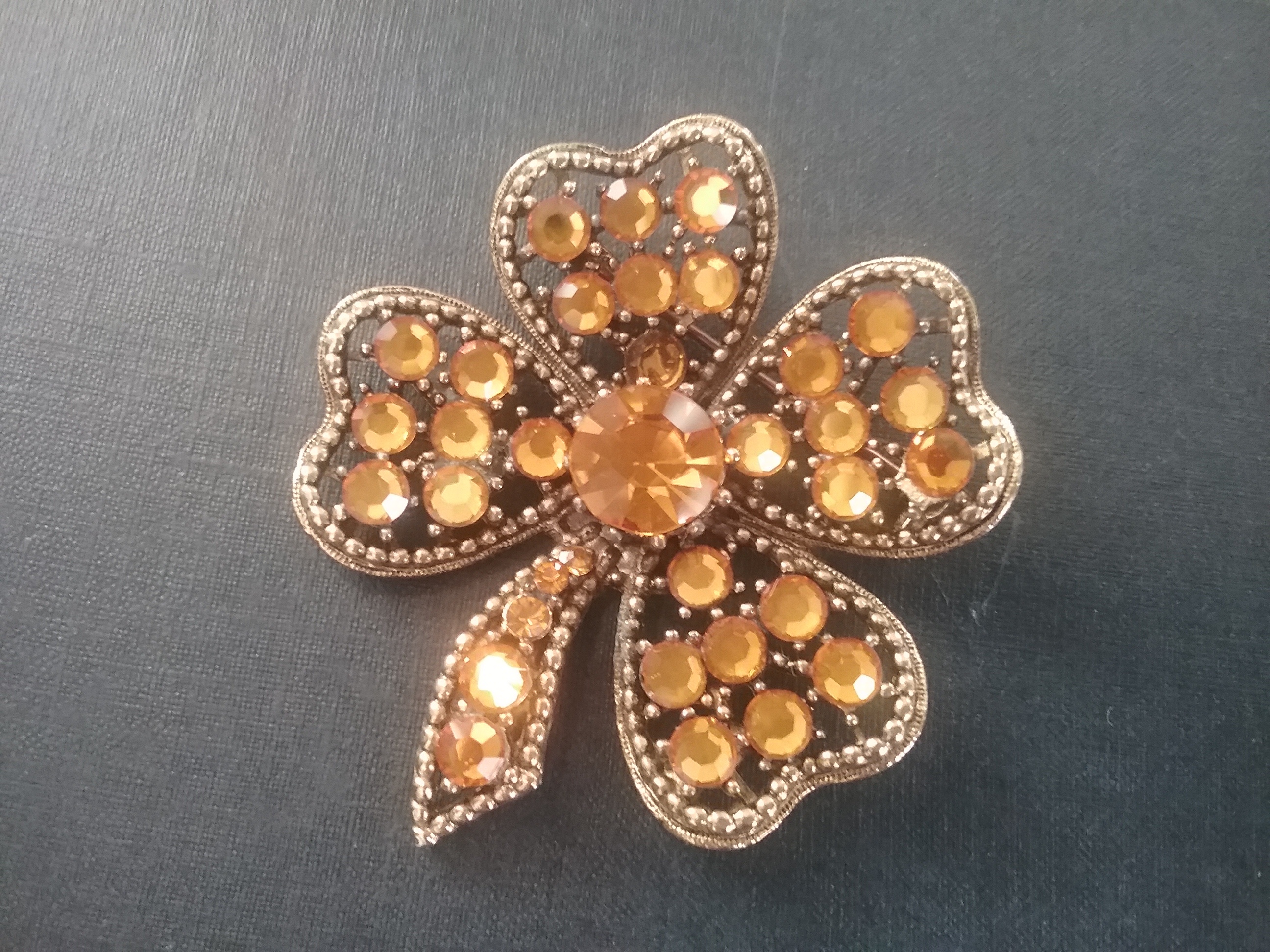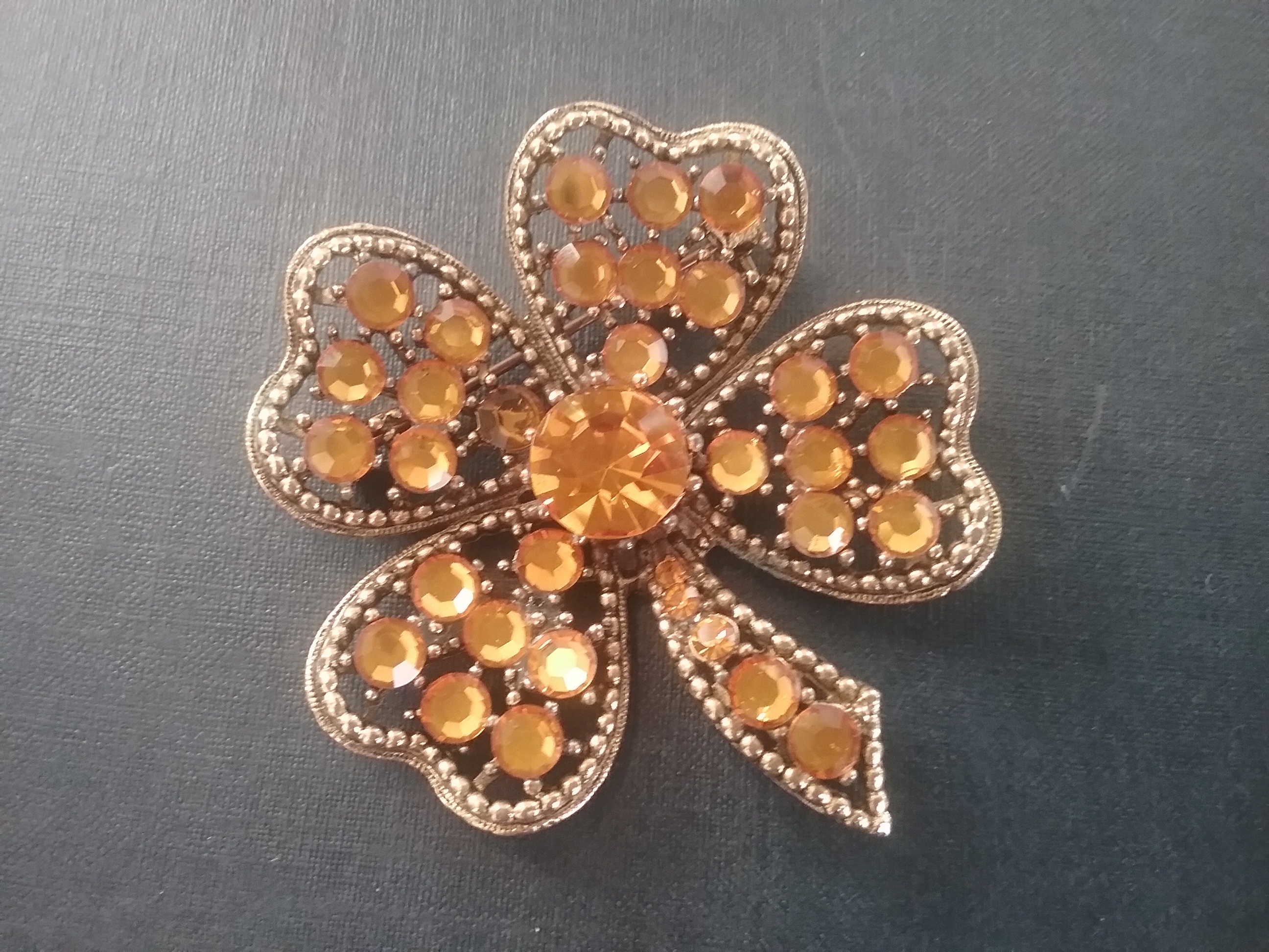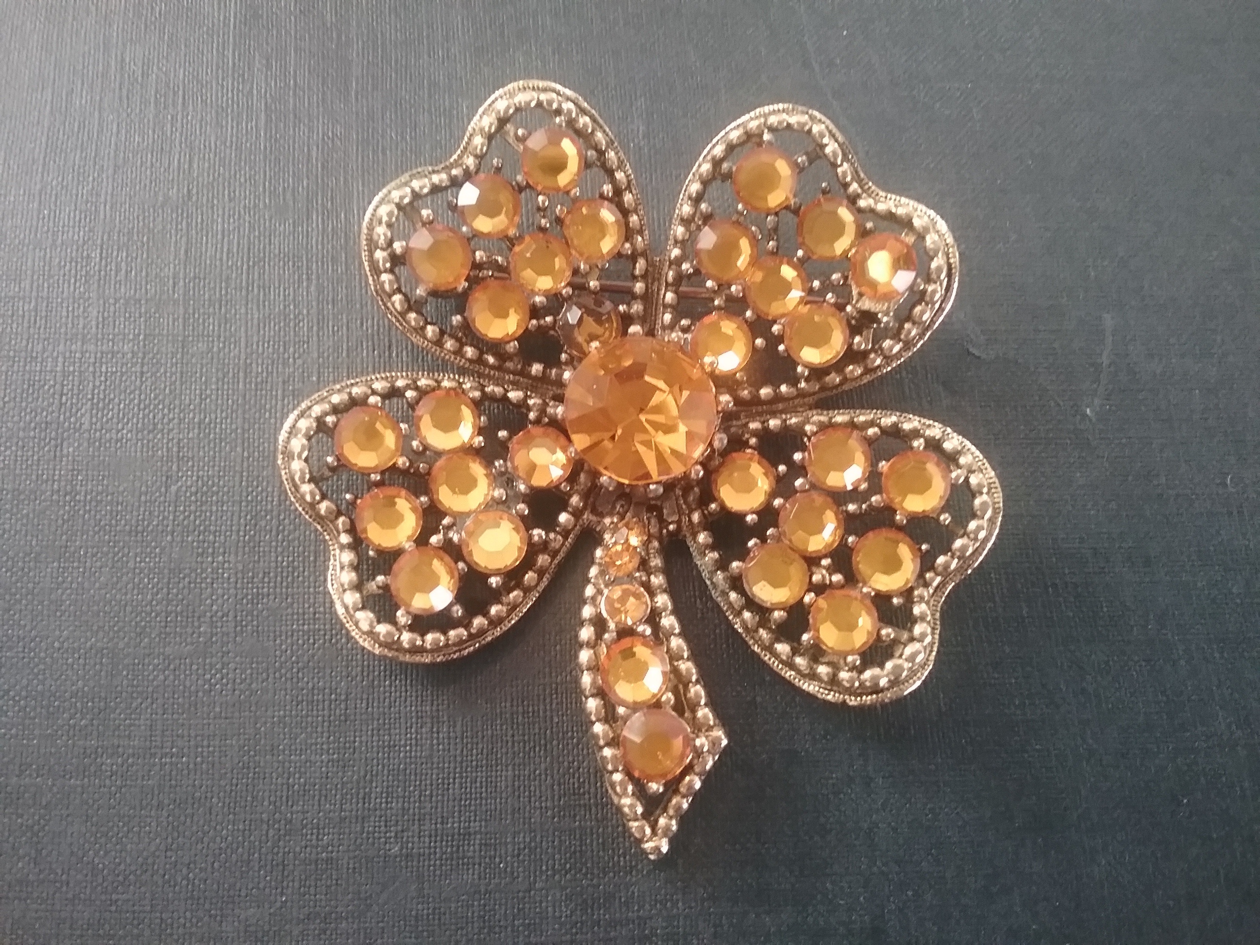 So pretty with the yellow/ amber rhinestones. The perfect kind of brooch for the upcoming holiday. Happy Saint Patrick's Day!