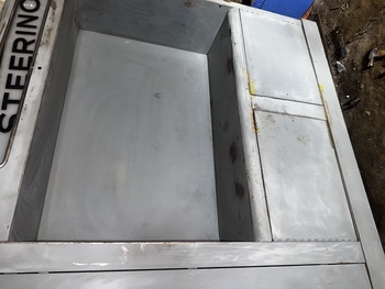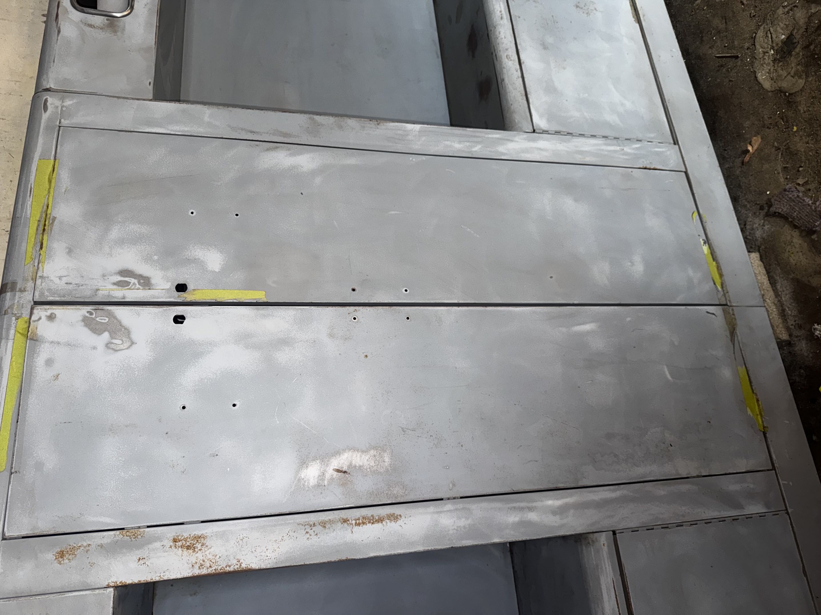 Solid steel construction. The original wiring is still behind the light panels. Years ago we began stripping it because my husband planned to repaint it with enamel but never finished the project.