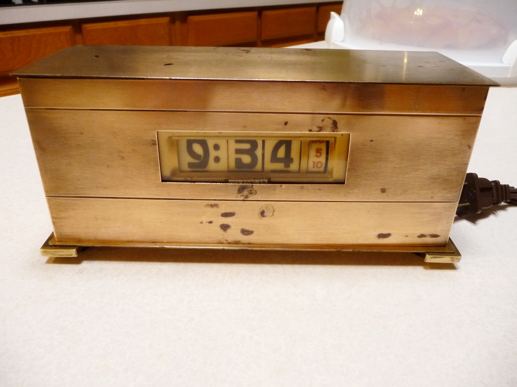 The first photo shows the clock's (inoperable, to say the least) condition when I purchased it. Following a bit of WD-40 with 800 grit and 4/0 steel wool, and my favorite Simichrome polish, it turned out pretty good considering its age and prior condition. I have always been drawn to its art deco(ish) design of the body, and mid- to early-century font of the numbers. And it is always great to see anything with age brought back to serviceable use and enjoyment. It now sits, and runs, on my son's home office desk.