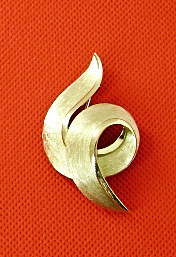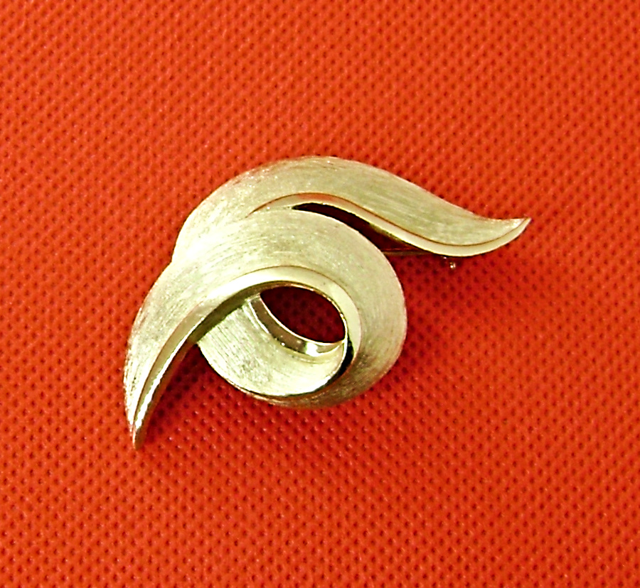 Trifari Pin. With a loop the loop design. In brushed and polished gold tone. Measures 2-1/4" tall. Thrift find.