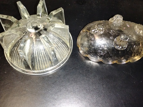 Two Vintage Cut Glass Designed Candy Dishes That Sit And Are A Staple On My Desk.