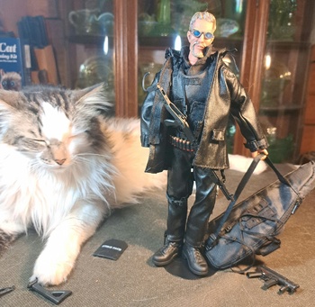He's very cool & scary looking with all that ammo. Except to kitty taking a nap :)