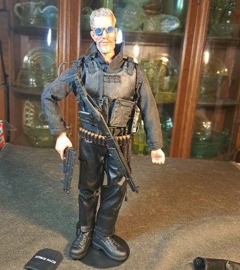 I believe this is an old school terrorist figure as seen in the 70s. The weapons are a bit later. Comes with tons of accessories. Has an mp3 submachinegun, shotgun and pistol. After 20 plus years the cigar doesn't fit in his mouth and few other pieces don't quite fit. Does have a cool leather jacket.