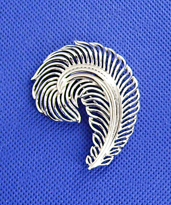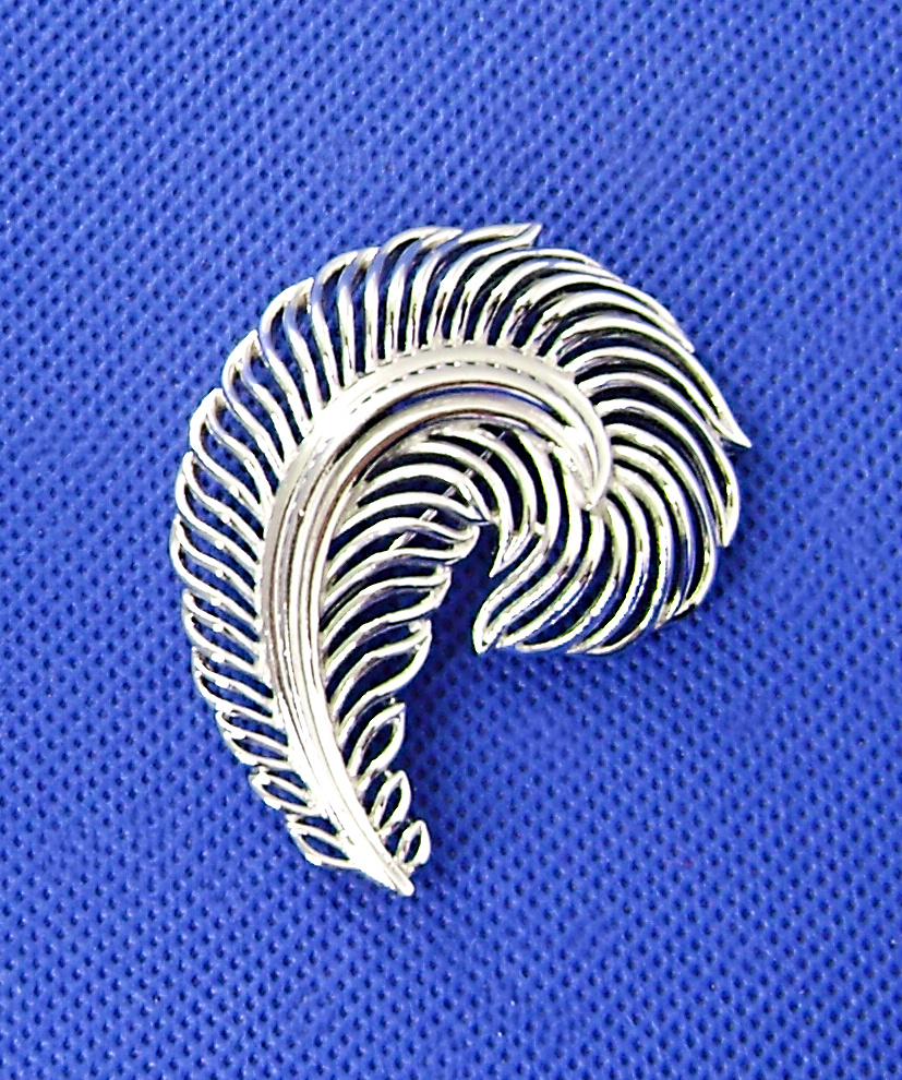 Trifari plume pin. I found this pin at a yard sale. In an all platinum rhodium finish. Measures 2-1/4" tall.