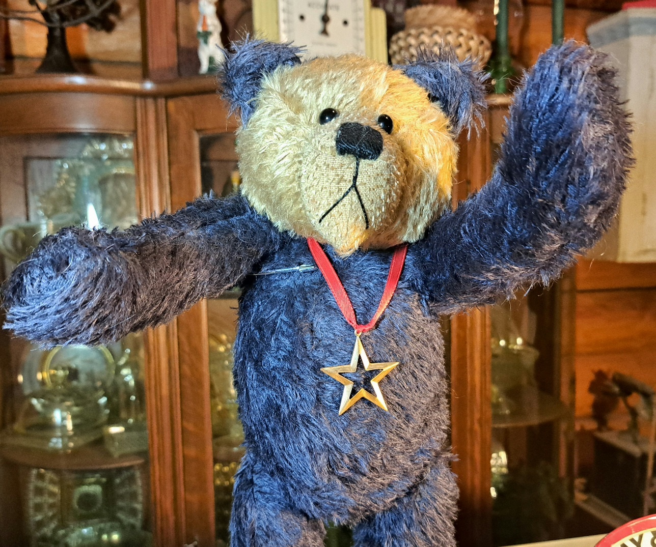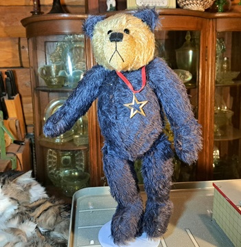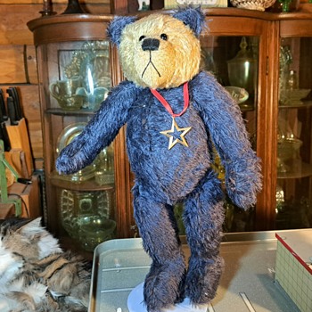 This is Libearty who is a limited edition 108 of 200. He is a mohair bear 17 inches talk. Sadly I have not found any information about the Old Friends Bear Co aside from seeing many on etsy. So no clue how old this is. It was made in USA.