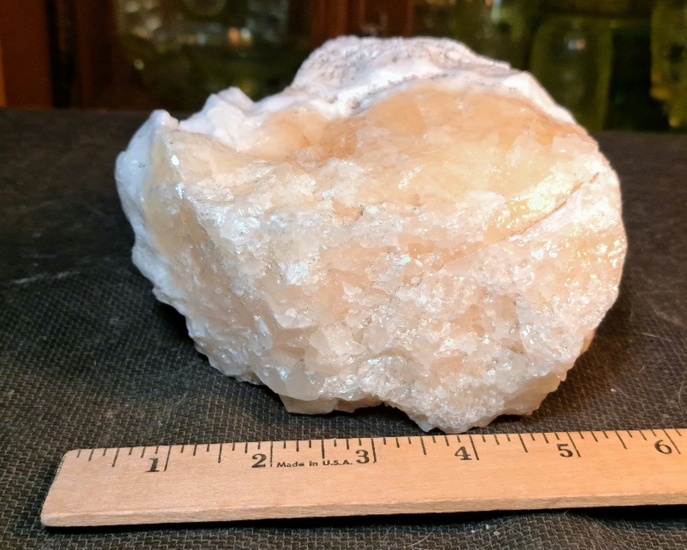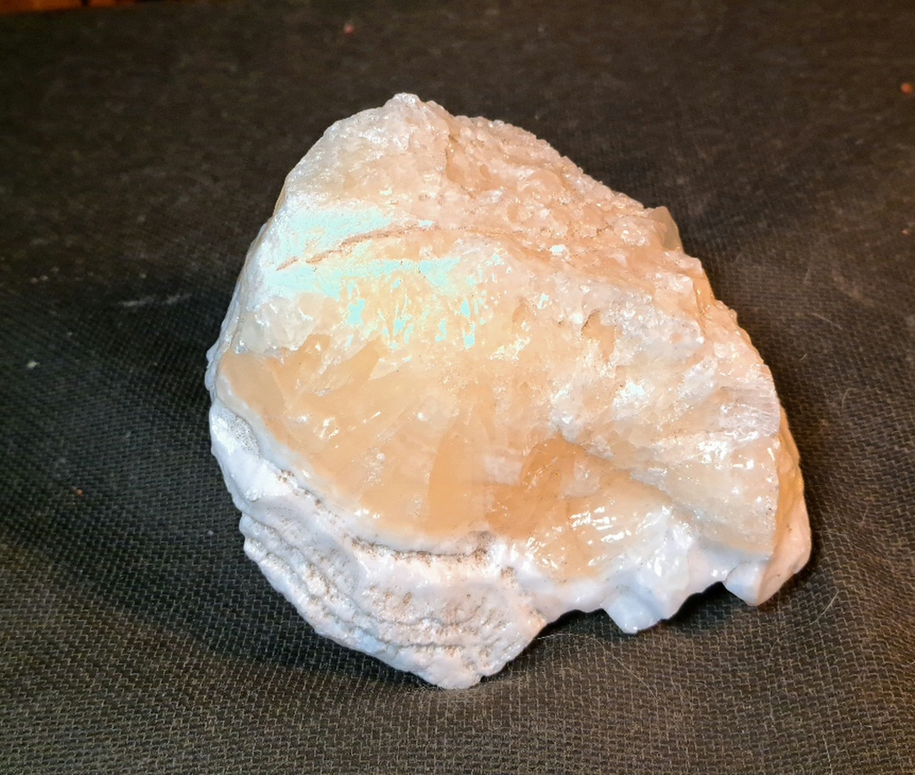 A large interesting chunk of rock. It is about 6 inches long and weighs 3 1/2 pounds. Pineapple Calcite is also known as yellow calcite. All the information on this mineral aside from the supposed metaphysical properties. That seems to be increasing self confidence, refreshing energy and purifying properties. And best of all activating the Solar Plexis Chakra.