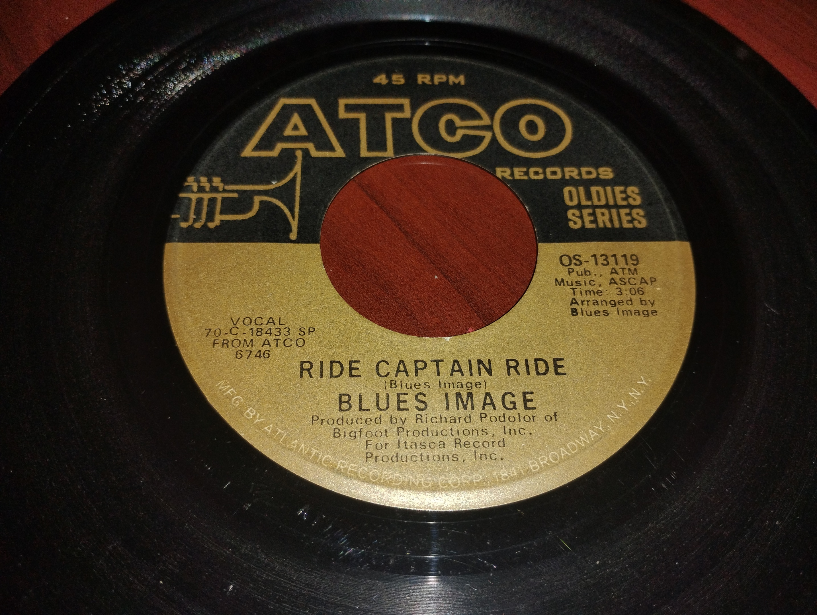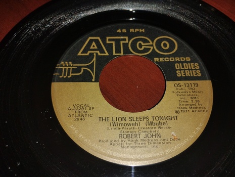 From The ATCO Gold Record Series Promotion, Is The 1971 45RPM Double Airplay Release From Two Separate Artists. The First Is The Group Blues Image, With Their Signature Tune, "Ride, Captain Ride". On The Flipside Is Robert John's Rendition Of The Song, "The Lion Sleeps Tonight".