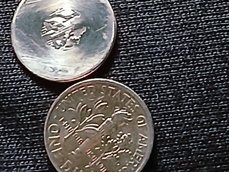 I'm no expert, but I suspect dav2no1 is right about your dime having been damaged by a clothes dryer.