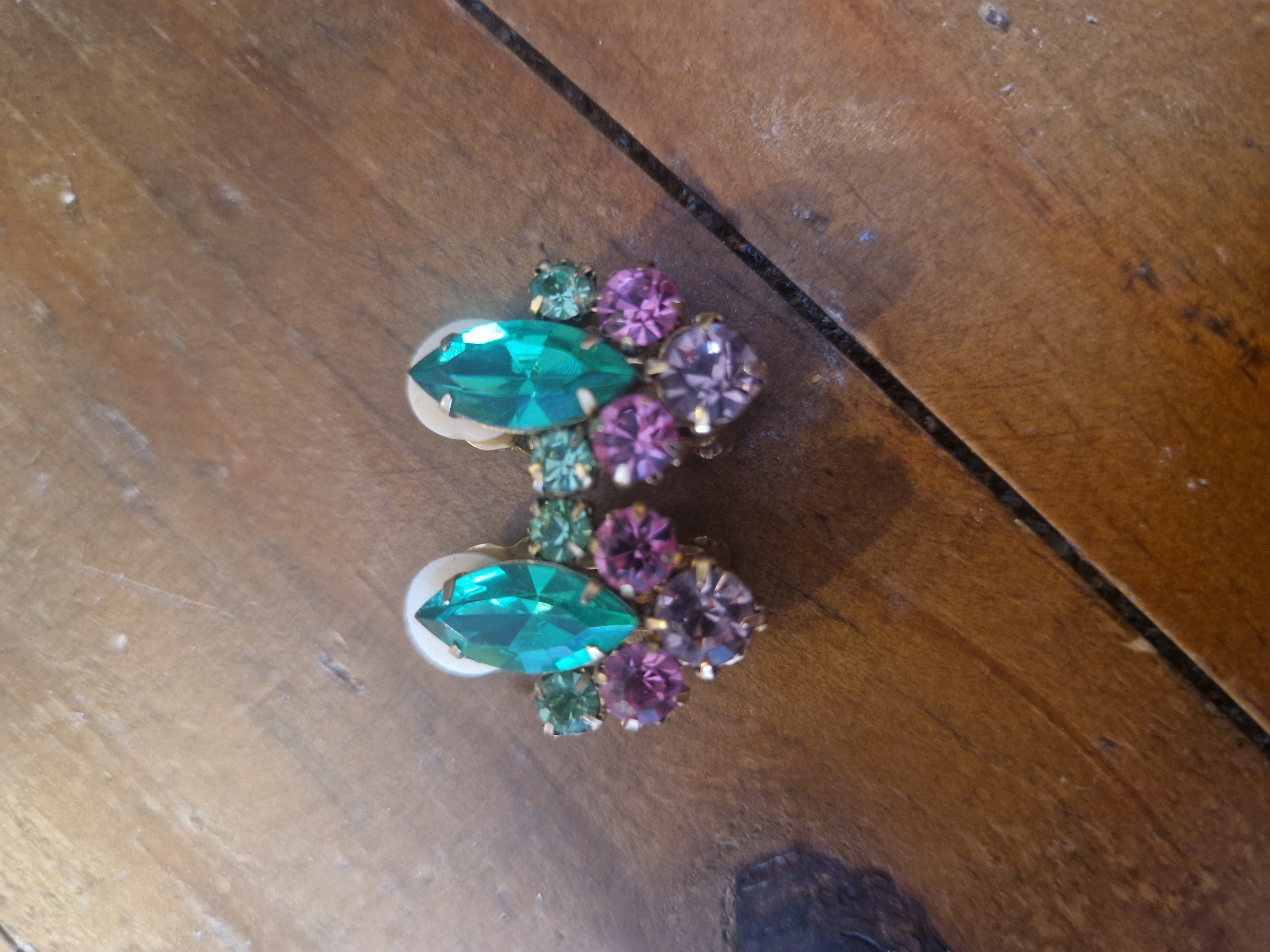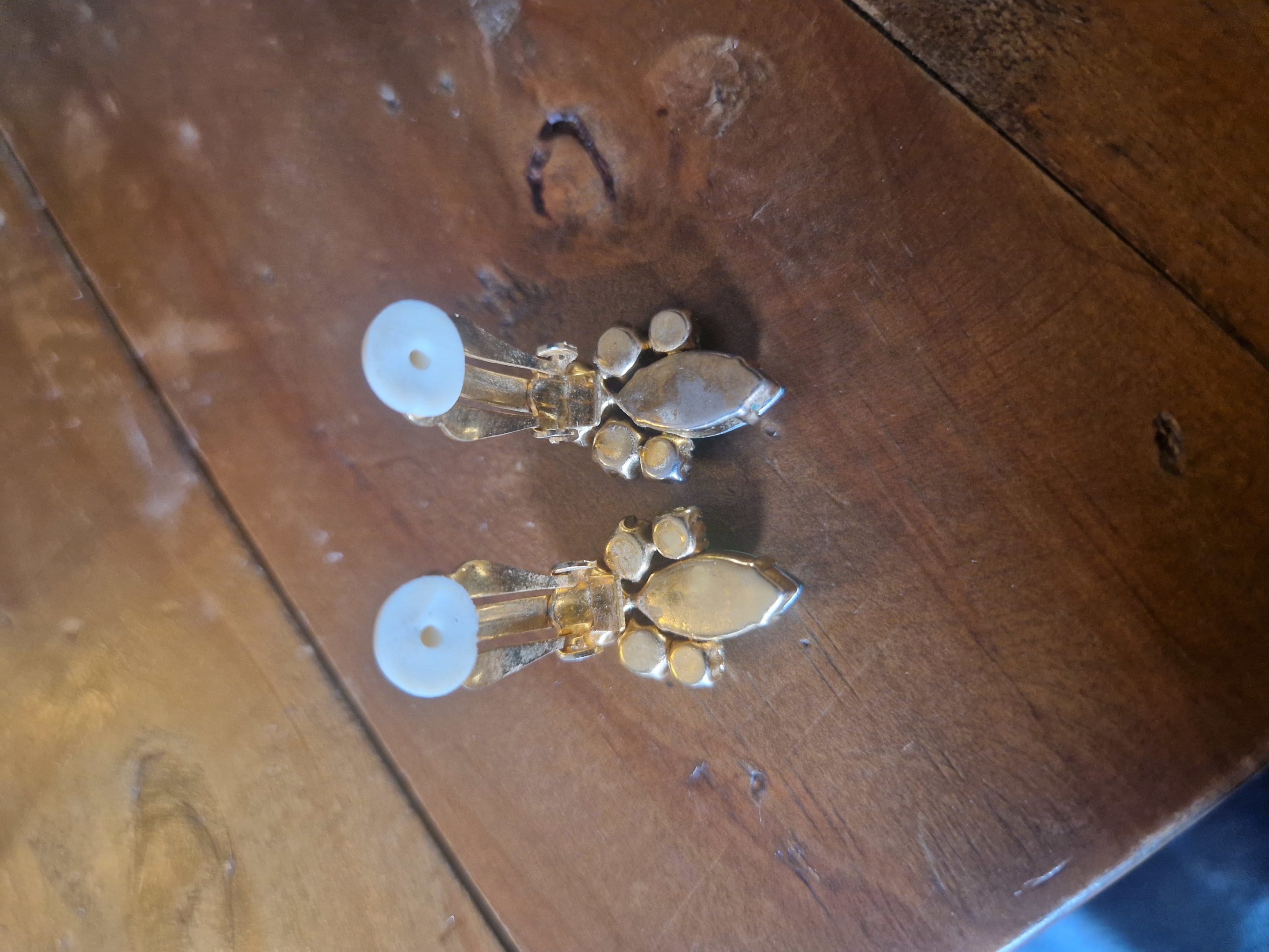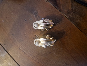 Can anybody help identify these clip on earrings, I know they are vintage but little else so any assistance at all would be great. Any details you know at all, maker, timedate, metal, value or not etc. All information welcome. Thank you for taking the time to help