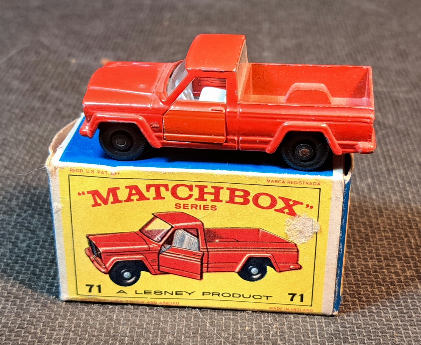 Got a second one in an E3 box. The Jeep Gladiator was sold from 1964 through 1968. The first two years were in a D style box as seen in photo 2. So this one is 1966 to 1968.