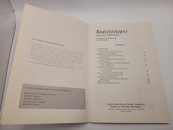 This is definitely not an exciting book. But here's what got me excited..my sister had cleaned out her garage and had stuff added to the pile for this weekends Fleamarket. I'm working, so she is selling our etsy store booth alone. I saw this pile of books from dad's stuff. I immediately snagged it because the Atomic Energy Commission connection.