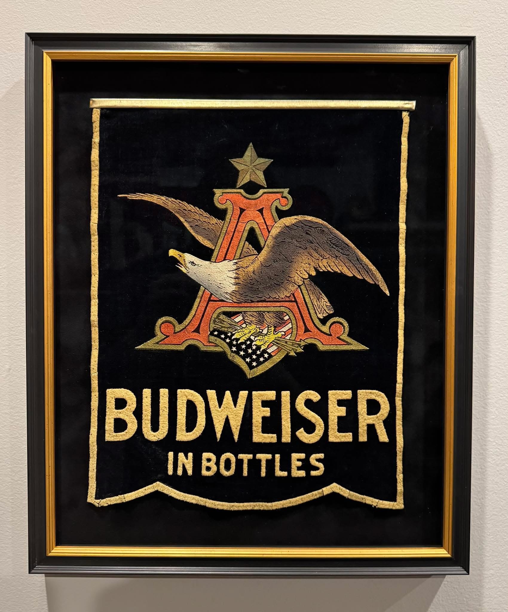 Pair of pre-prohibition Budweiser banners. Both banners are made of felt with one version reading “In Bottles”.