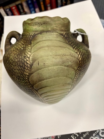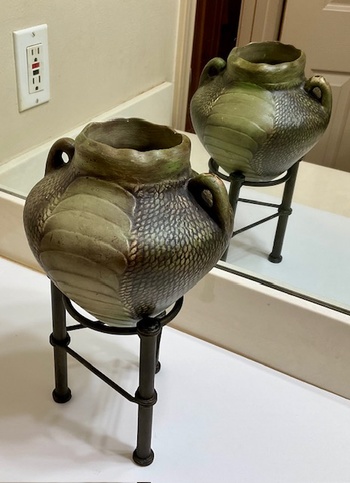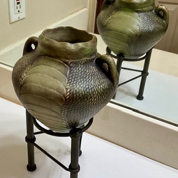 Found unusual shaped 6-1/2" tall pottery. Cannot identify, no maker name or markings.
