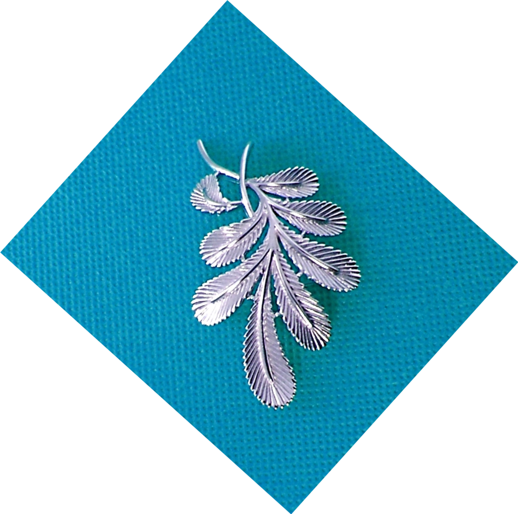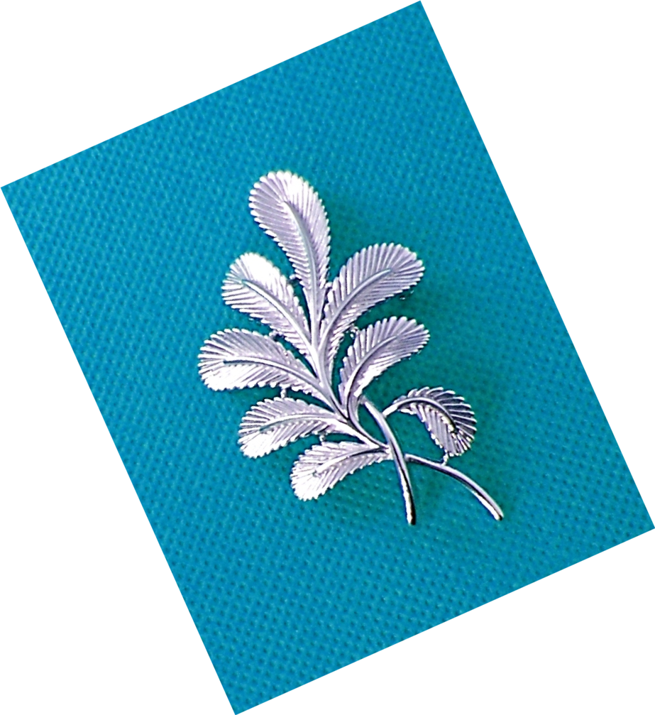 Trifari mistletoe pin. In platinum tone with leaves and stems. The Christmas kissing plant. Measures 2-1/2" tall.