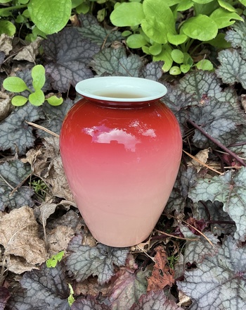 Luck has smiled upon me once more in the hunt for glass. I had a look around a few of my local op shops as I try to do most days, & was rewarded with this pristine & gorgeous piece of Peach Blow glass, a type which until now had eluded me. This fine specimen cost me a mere $5. Bargains are still out there to be had! You just have to be persistent.